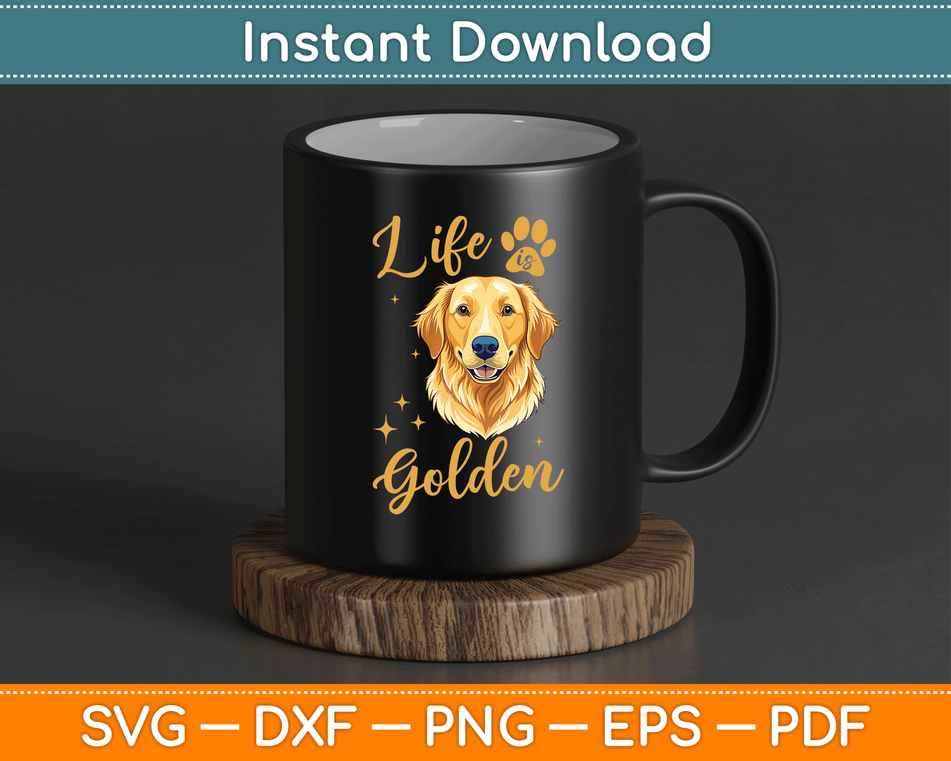 This cut file includes Life Is Golden Retriever SVG DXF PNG Design Digital Cutting files.