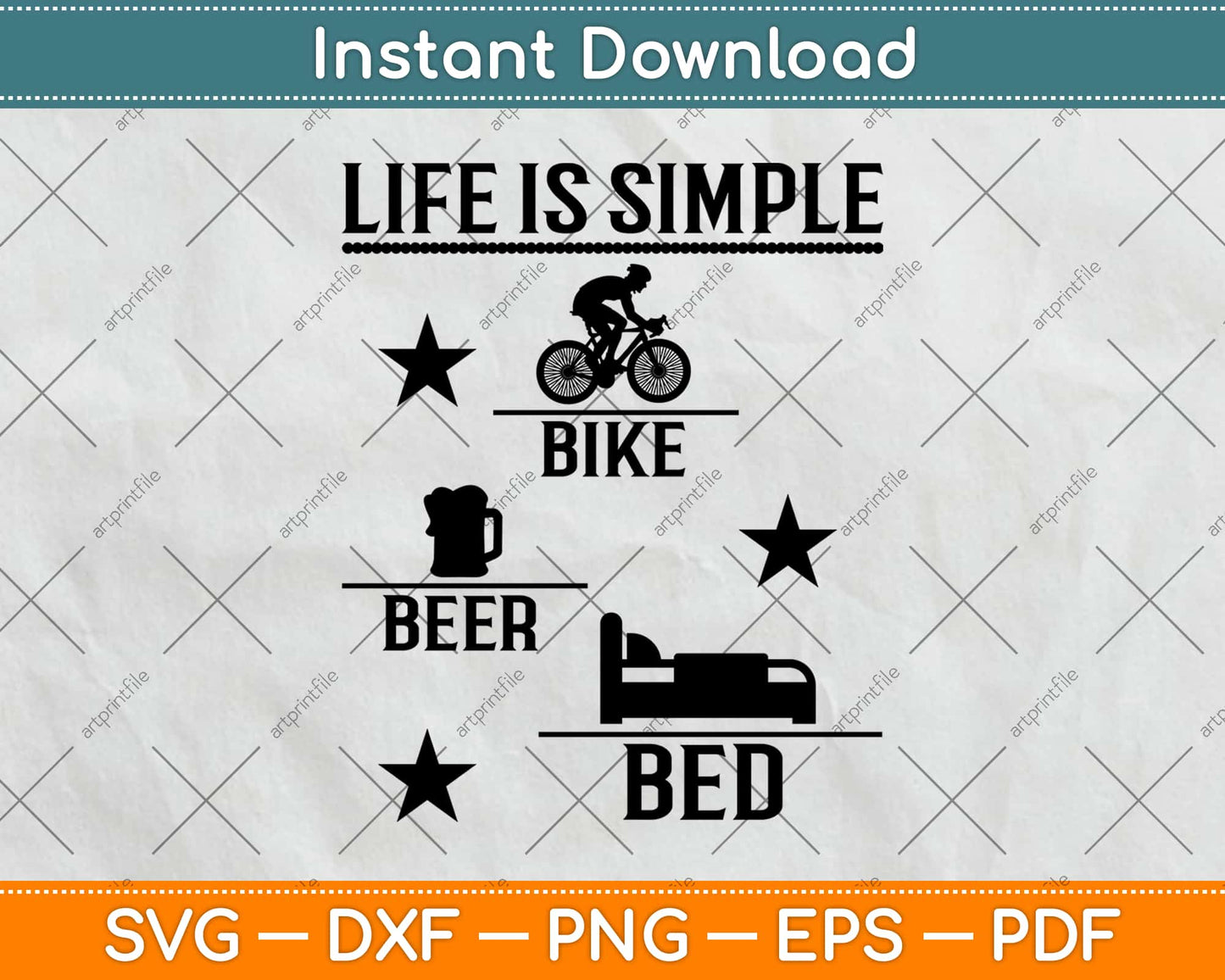 Life Is Simple Bike Beer Bed Cycling Svg Design Cricut Printable Cutting Files