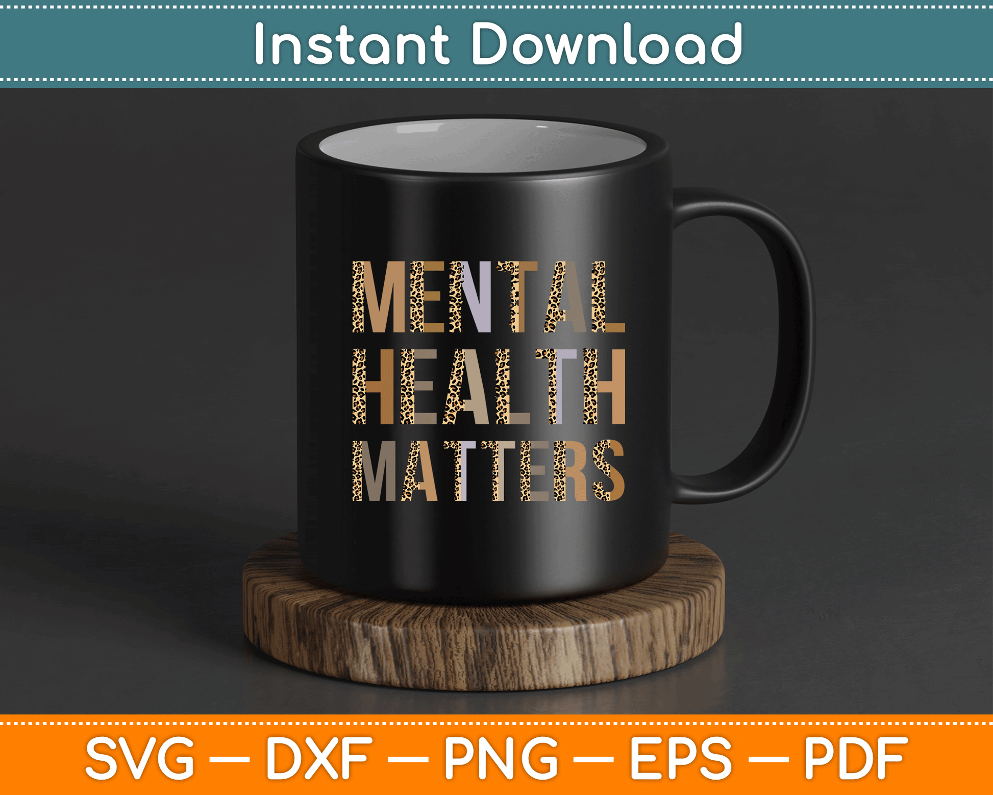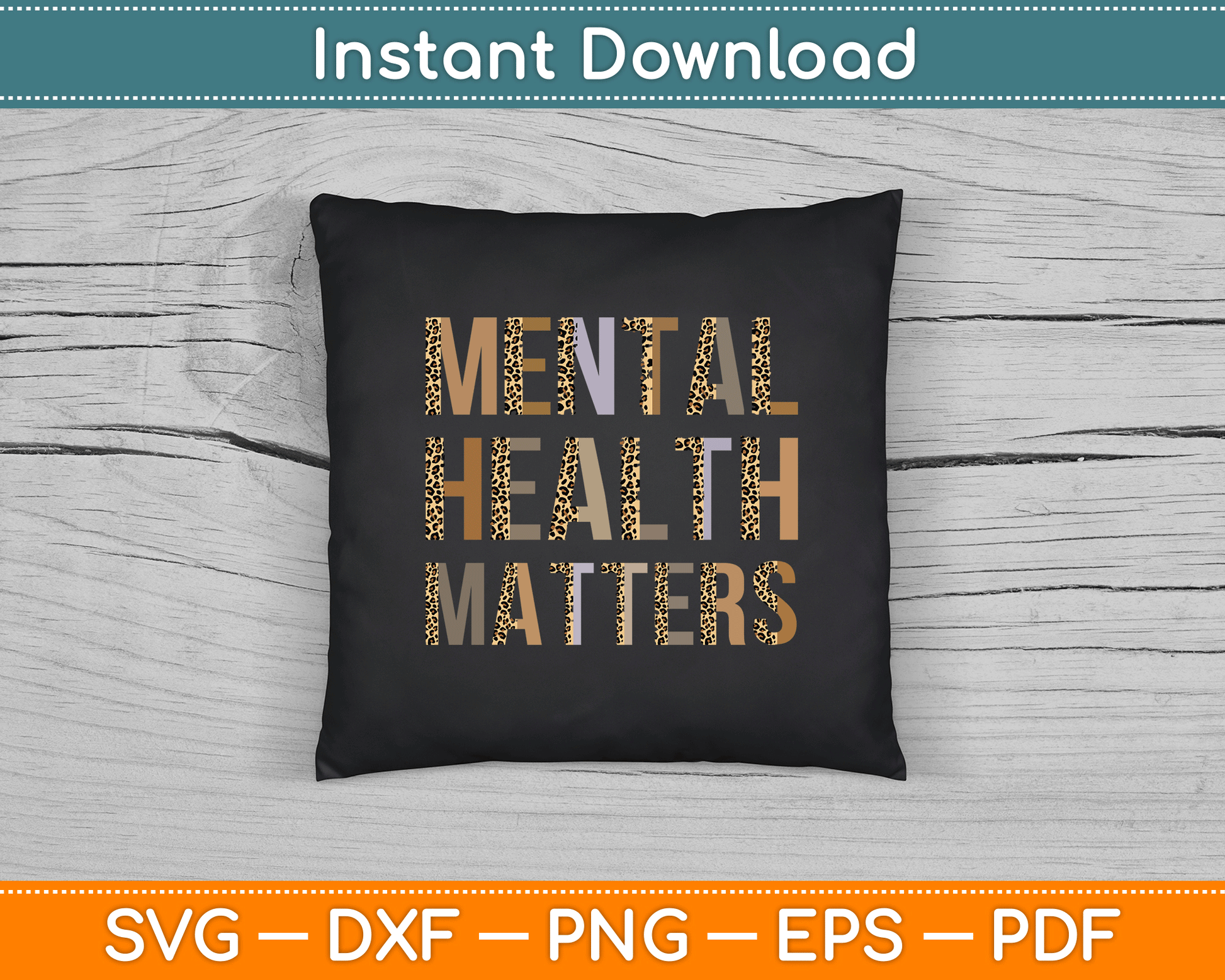 This cut file includes Mental Health Matters Leopard Print Mental Awareness Month SVG DXF PNG Design Digital Cutting files.