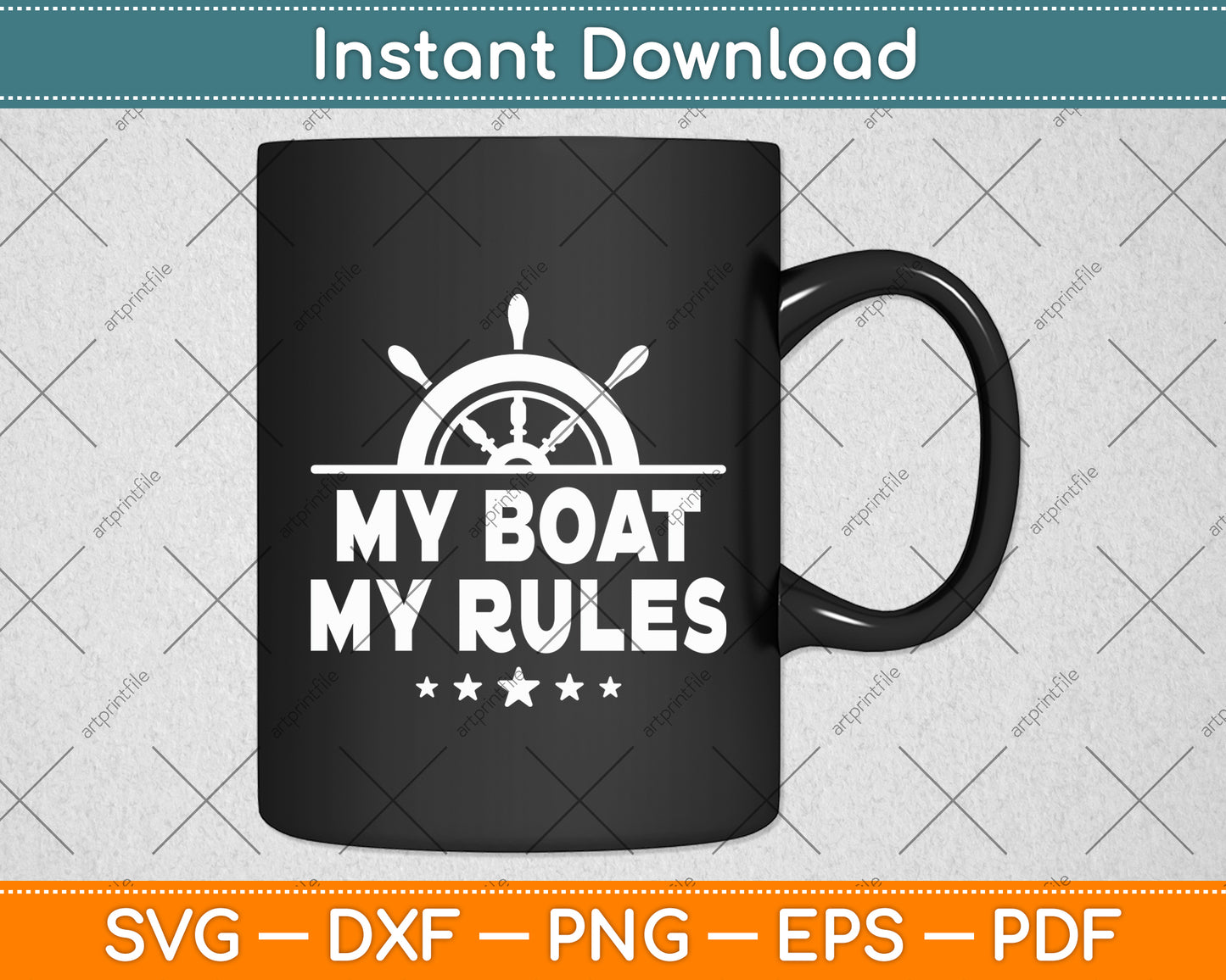 This cut file includes My Boat My Rules Captain Funny SVG DXF PNG Design Digital Cutting files.