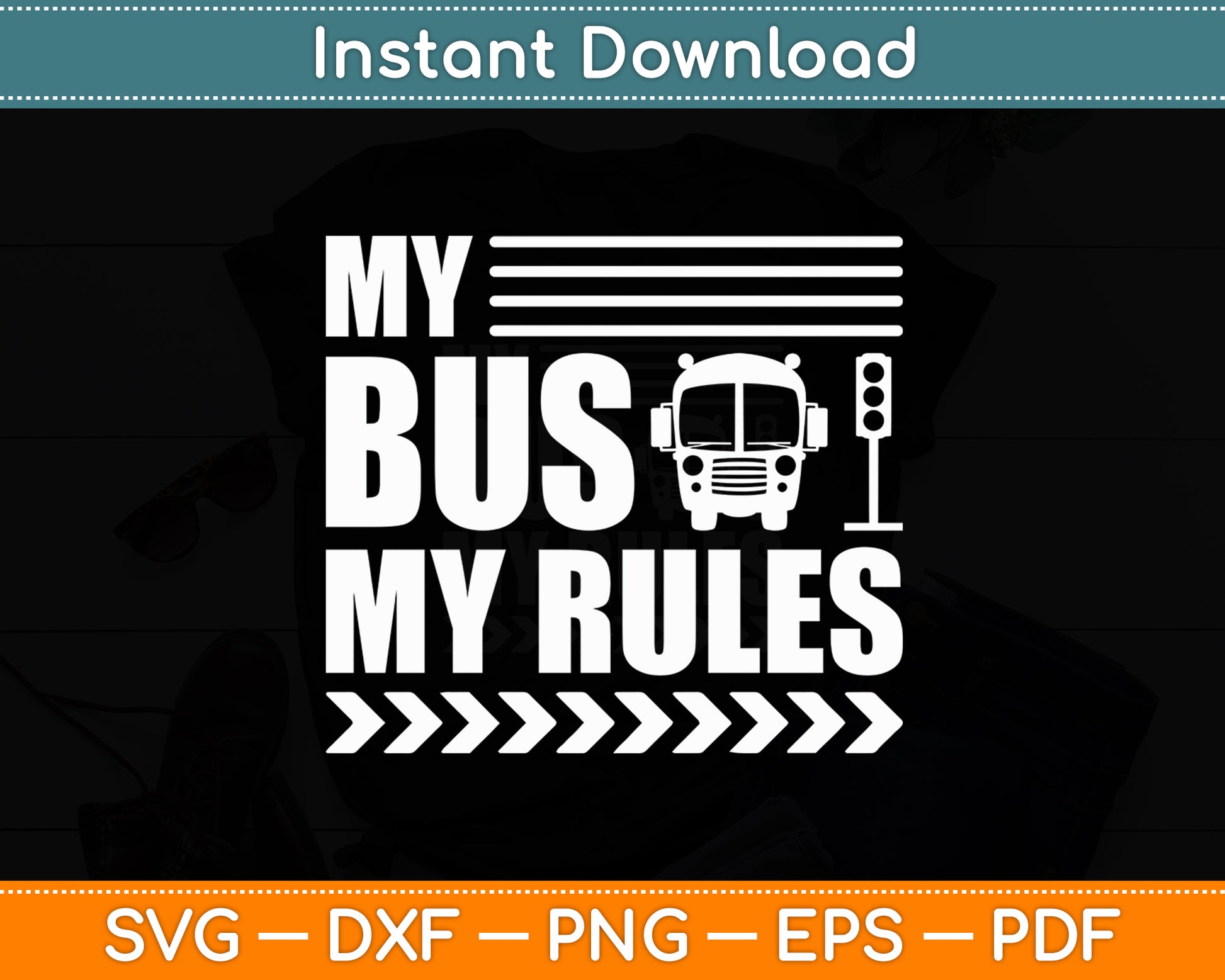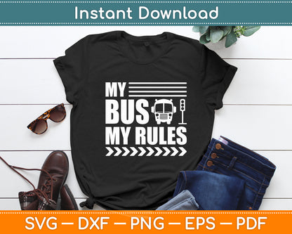 This cut file includes My Bus My Rules Busman Driving Bus Driver Operator SVG DXF PNG Design Digital Cutting files.