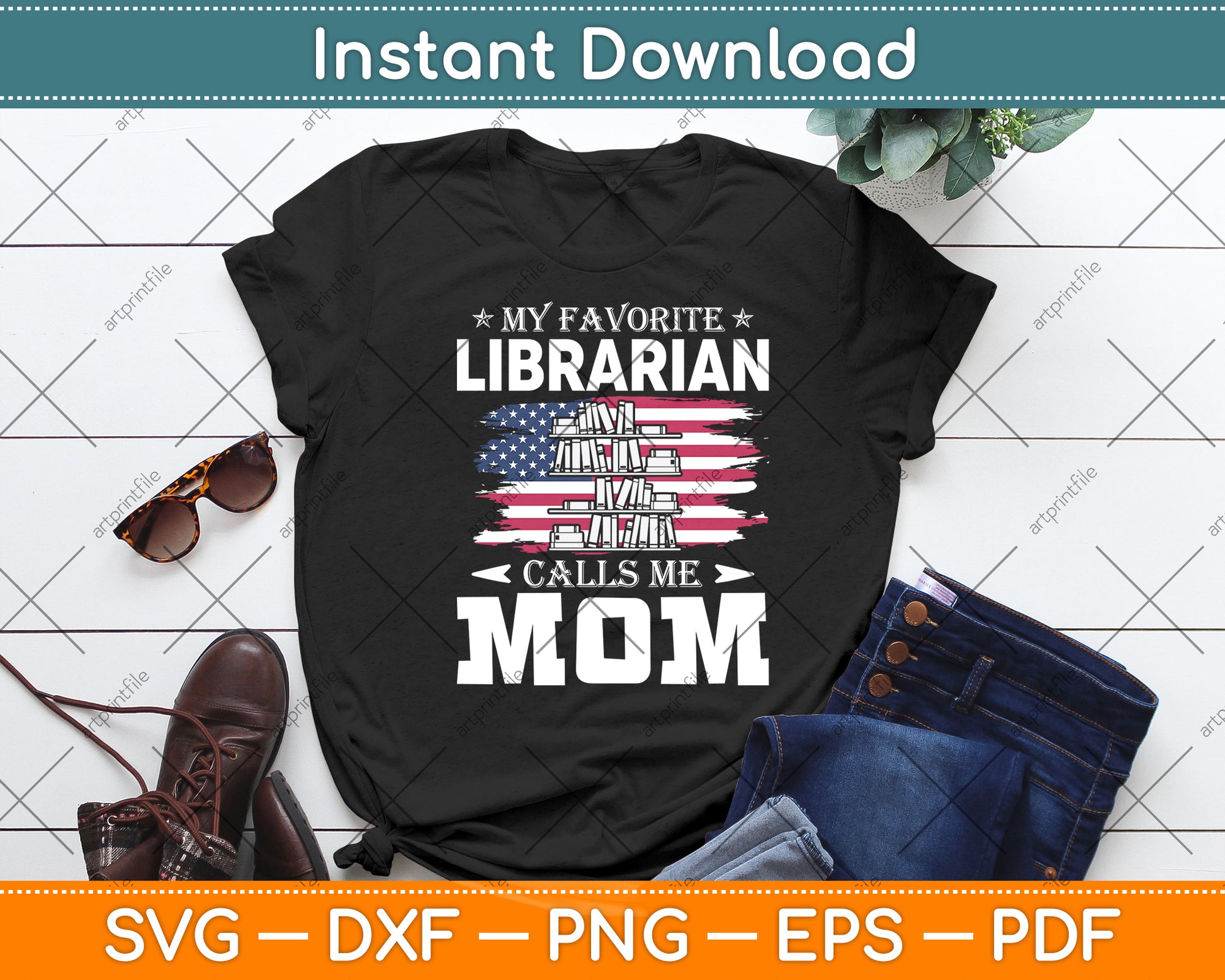 This cut file includes My Favorite Librarian Calls Me Mom Happy Mothers Day SVG DXF PNG Design Digital Cutting files.