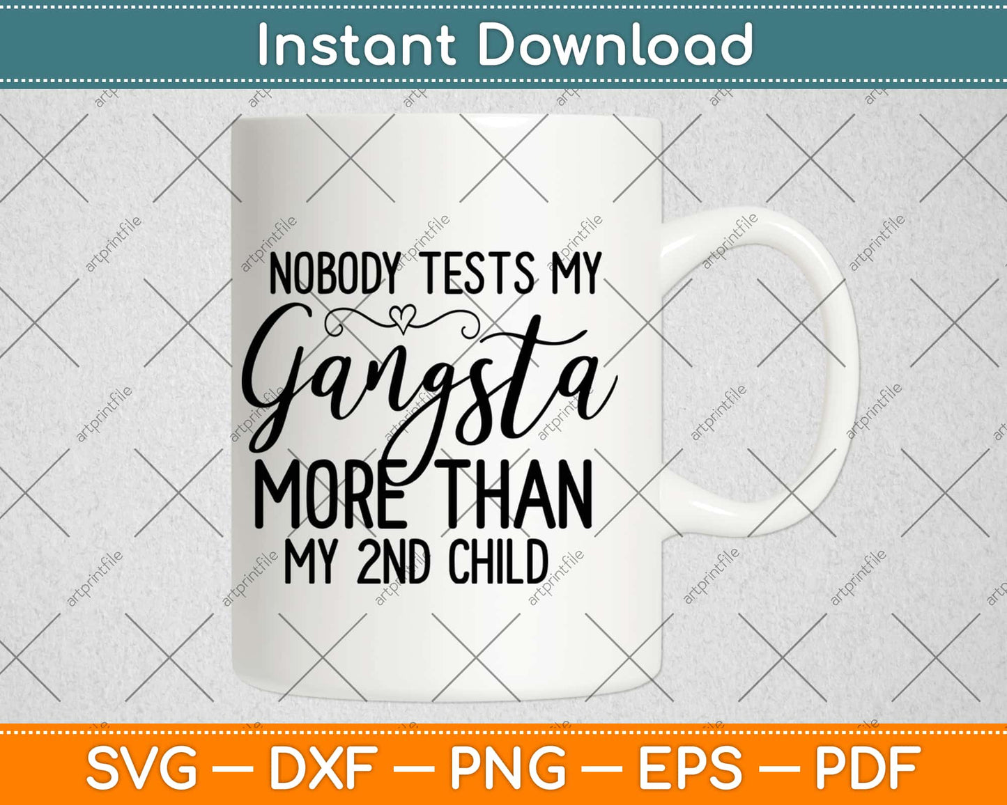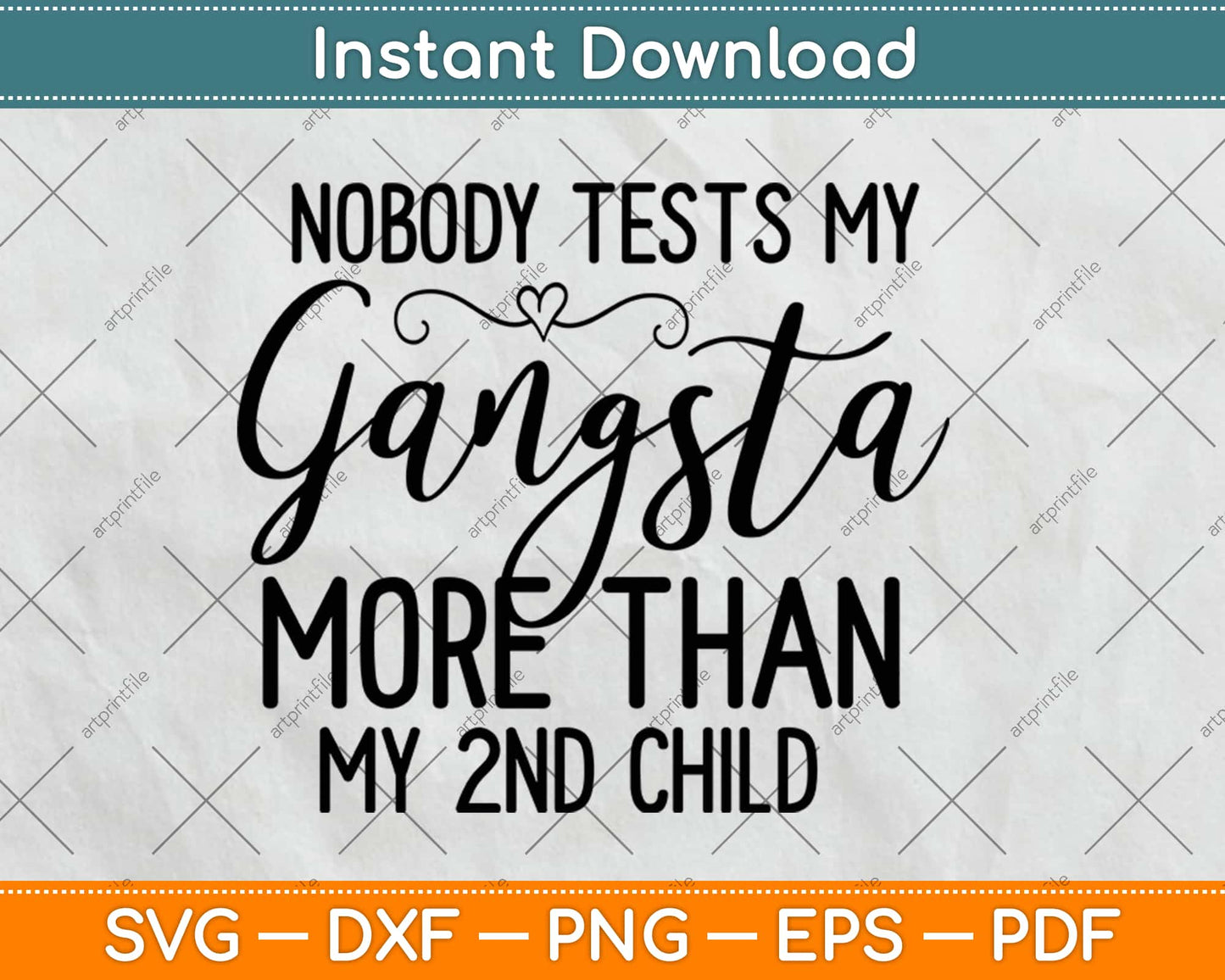 Nobody Test My Gangsta More Than My Second Child Svg Design Cricut Cutting Files