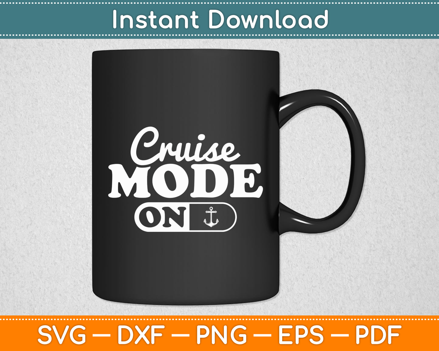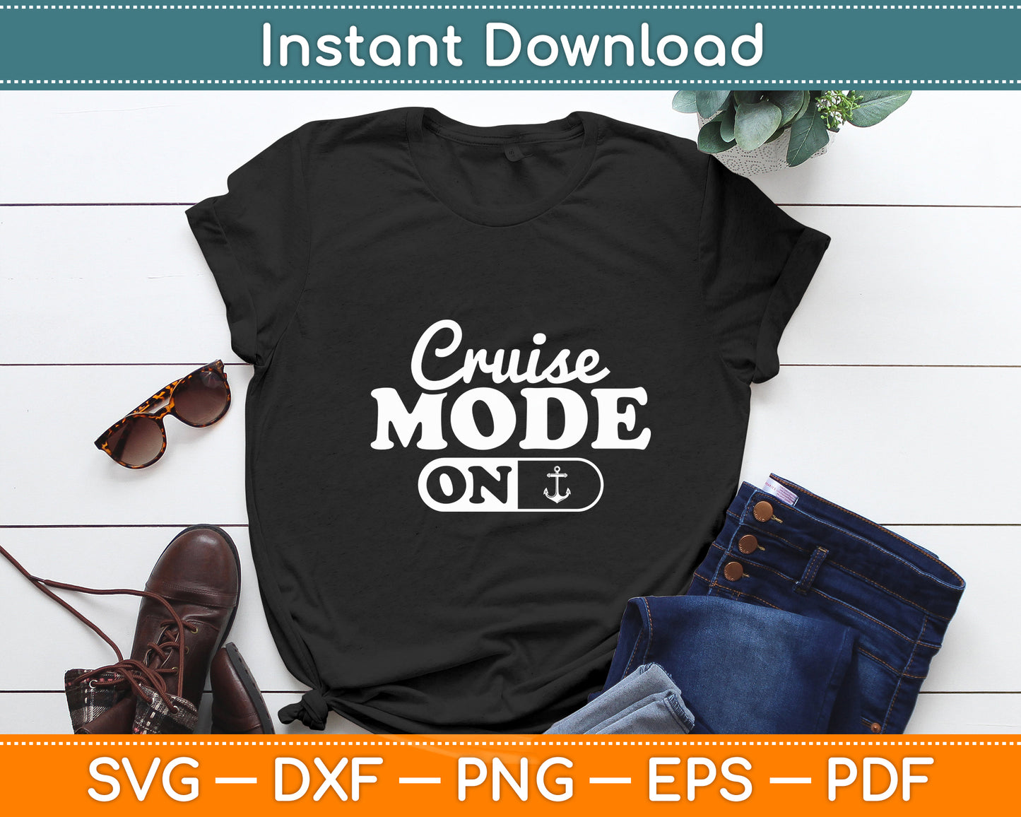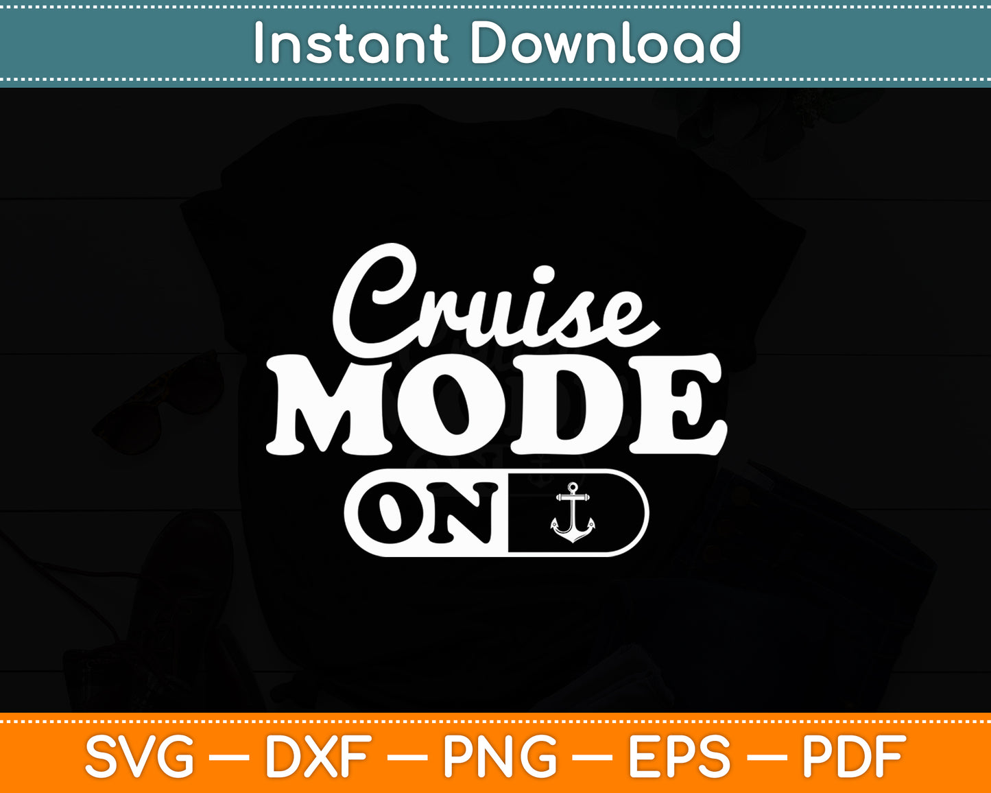 This cut file includes On Cruise Mode Funny Cruising Lover Vacation SVG DXF PNG Design Digital Cutting files.