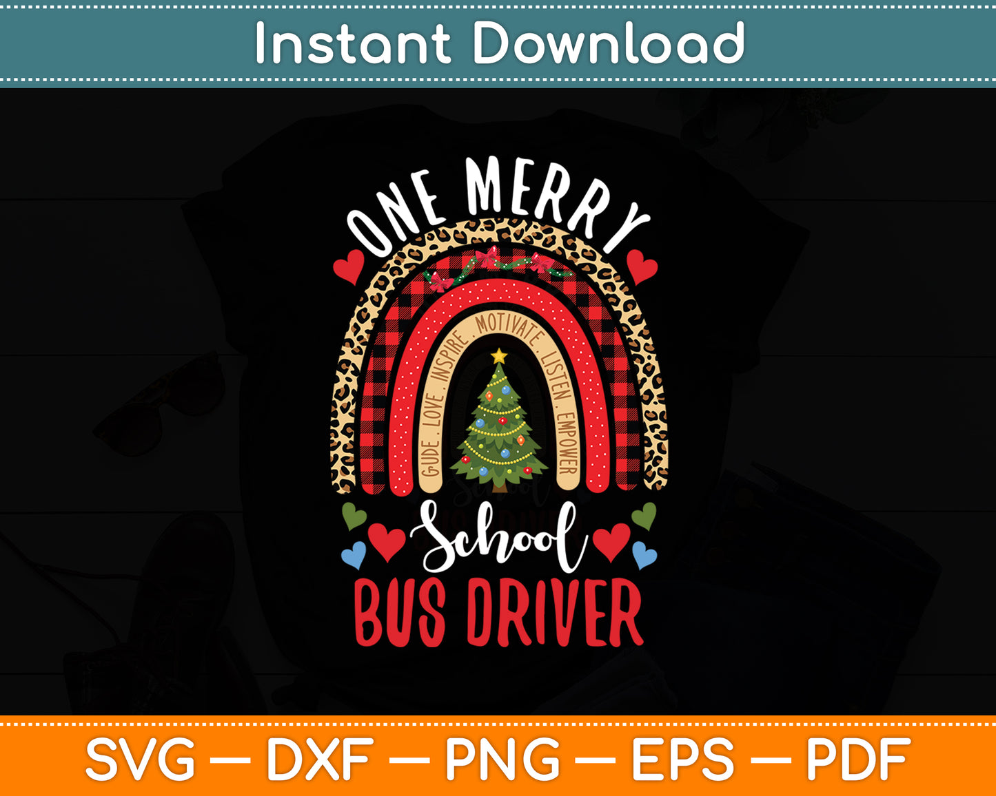 This cut file includes One Merry School Bus Driver Rainbow Christmas Bus Driver Funny SVG DXF PNG Design Digital Cutting files.
