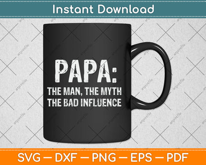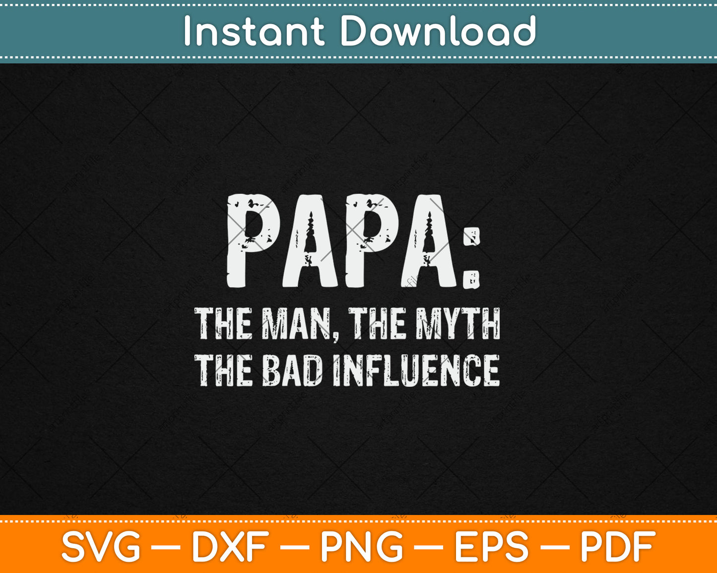 Papa The Man The Myth The Bad Influence Funny Dad Svg Digital Cutting File