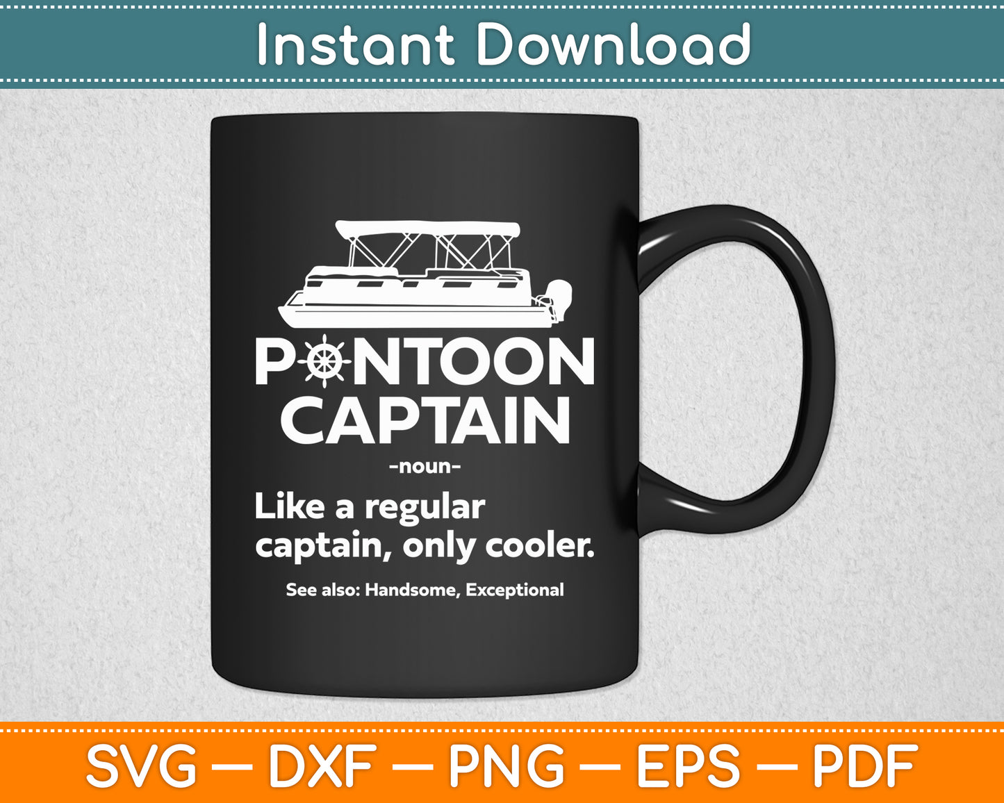 This cut file includes Pontoon Captain Definition - Boat Pontoon Boating Funny SVG DXF PNG Design Digital Cutting files.