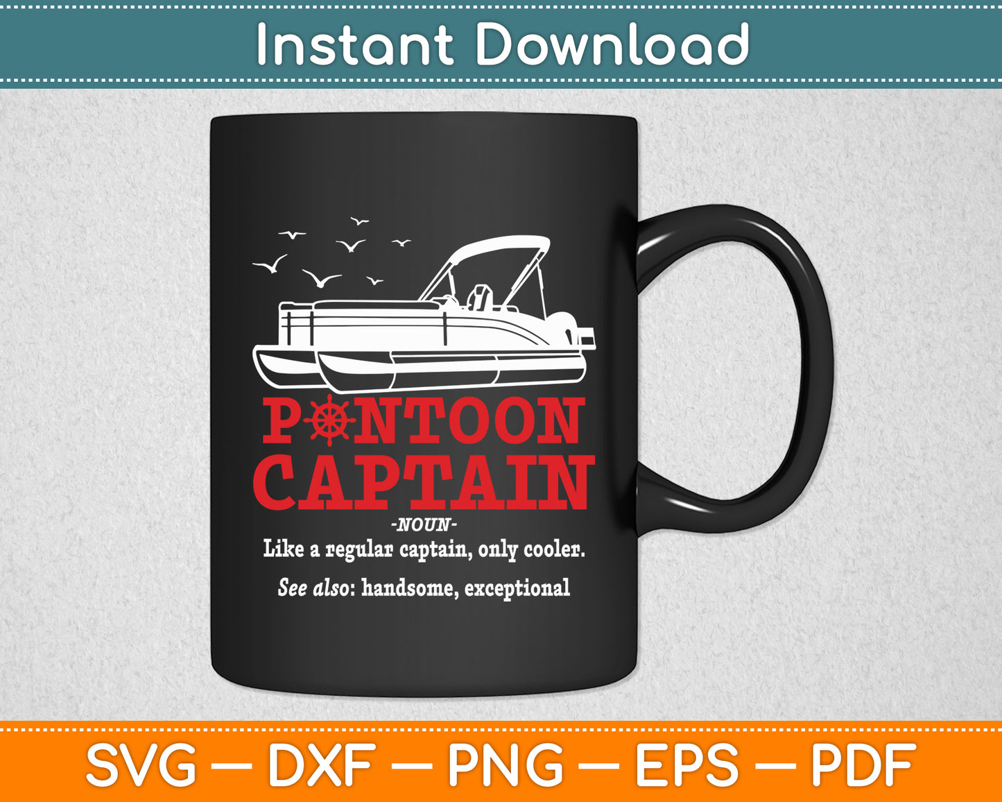 This cut file includes Pontoon Captain Definition Pontoon Boat Boating Funny SVG DXF PNG Design Digital Cutting files.