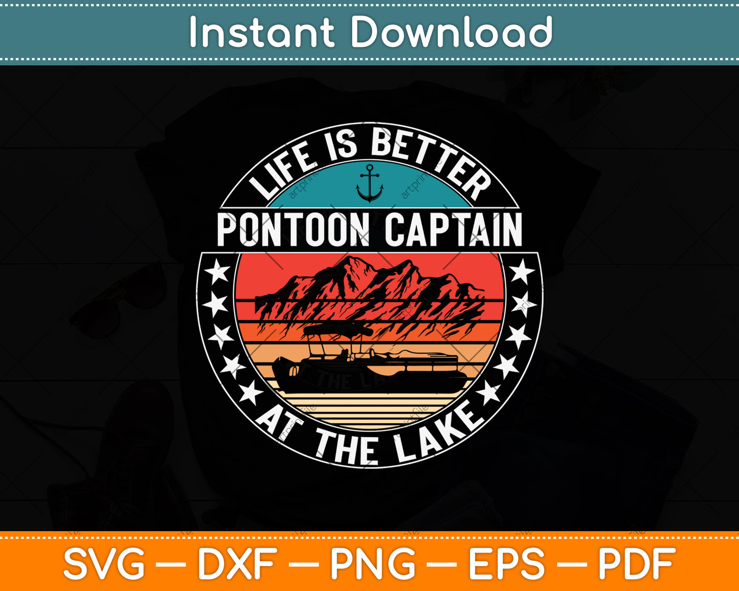This cut file includes Pontoon Captain Life Is Better At The Lake SVG DXF PNG Design Digital Cutting files.