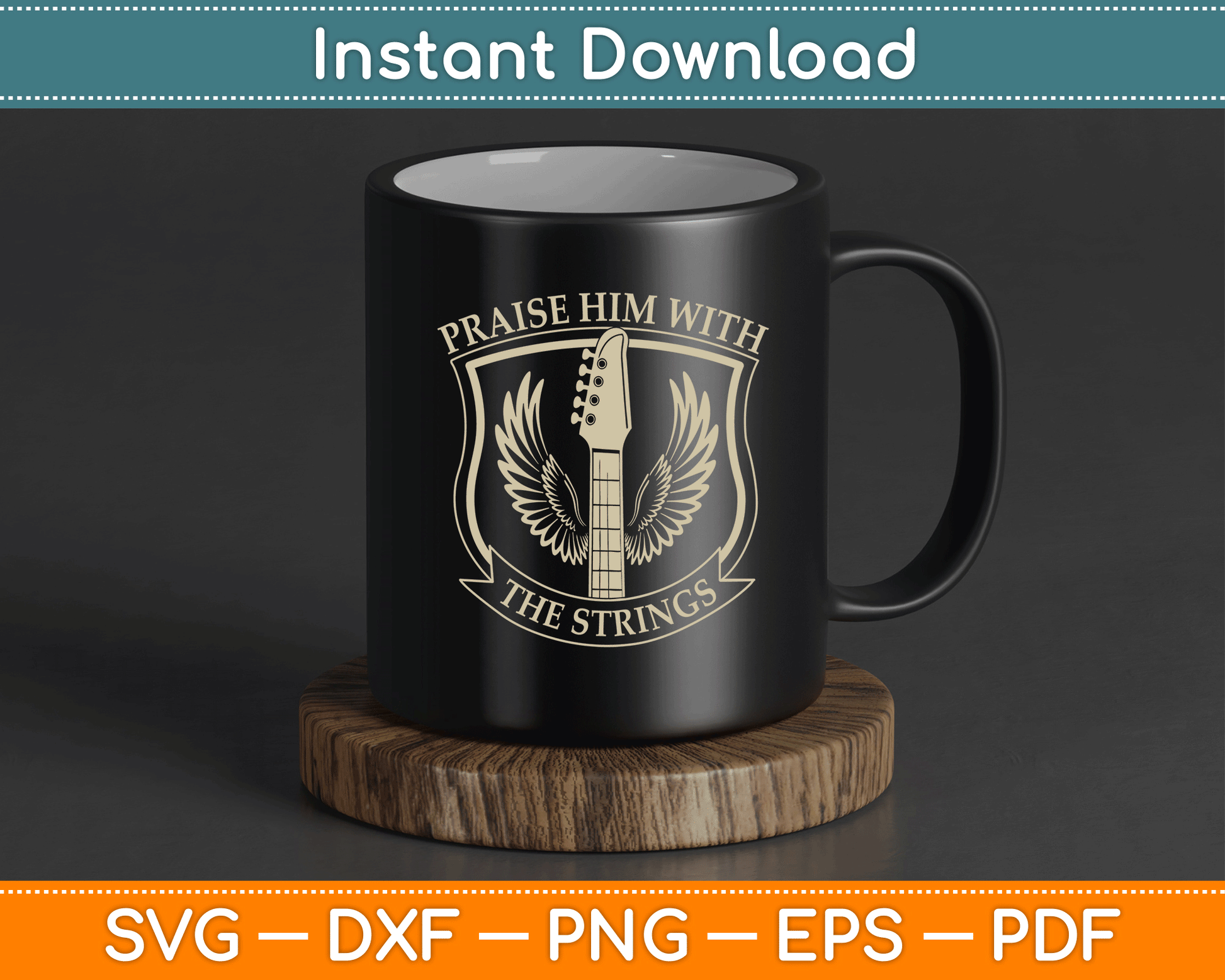 Praise Him With Strings Christian Guitar Psalm 150:4 SVG Digital Cutting File
