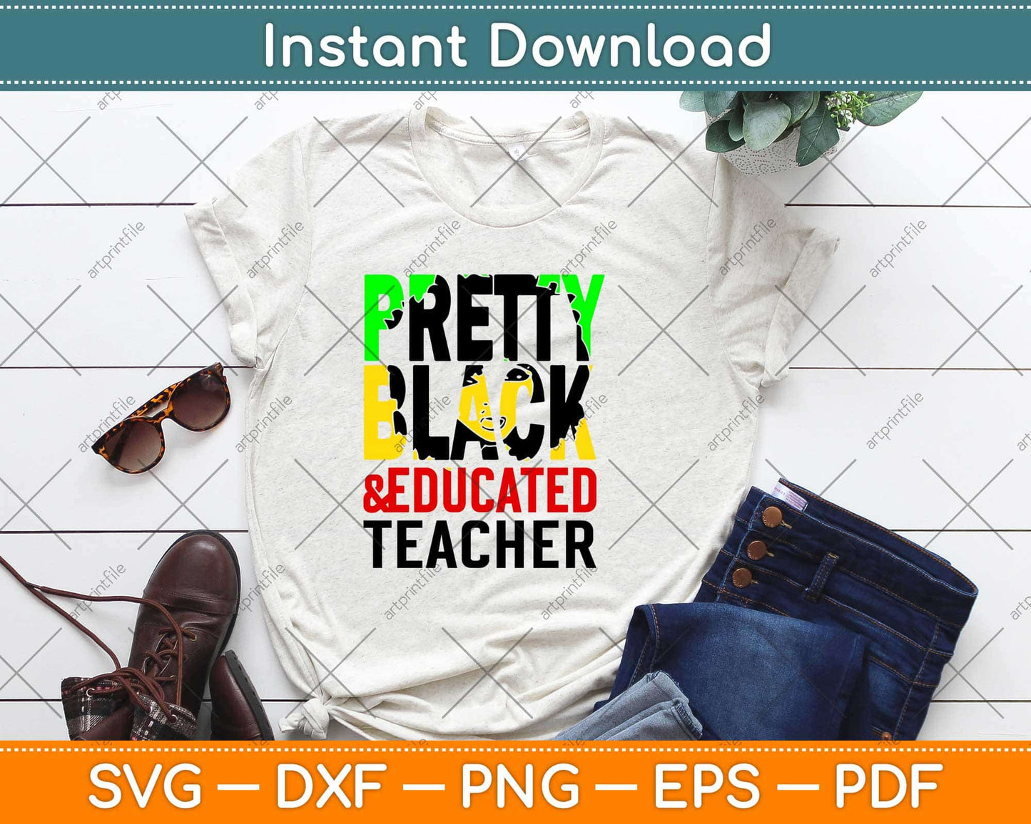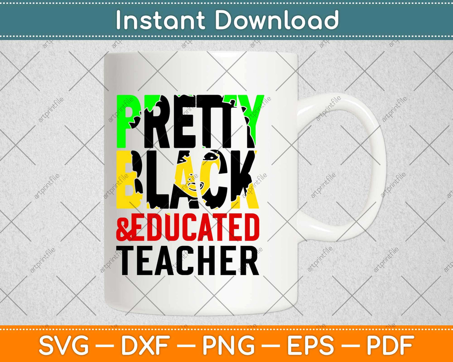This cut file includes Pretty Black Educated Teacher SVG DXF PNG Design digital Cutting files.