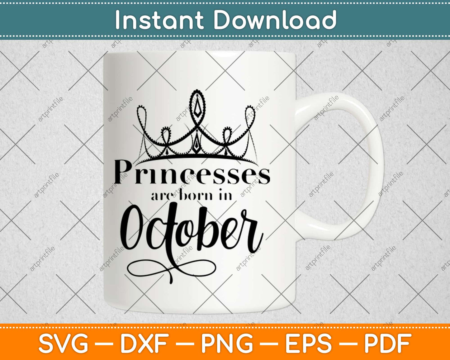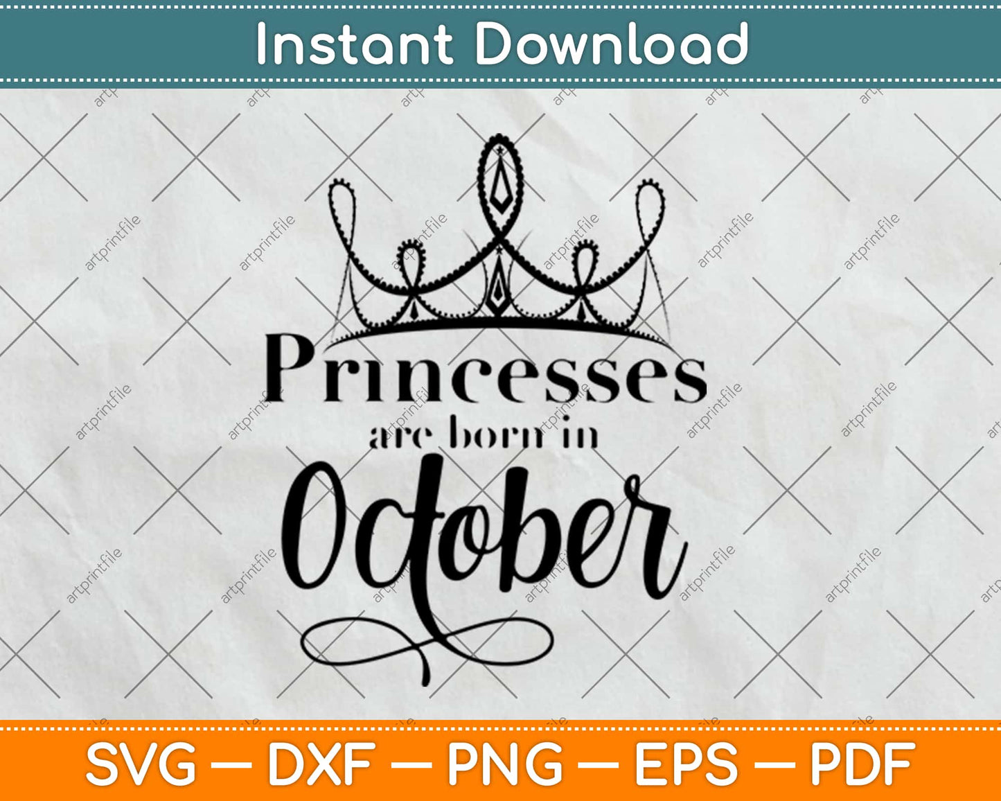 Princesses Are Born In October Birthday Svg Design Cricut Printable Cutting Files