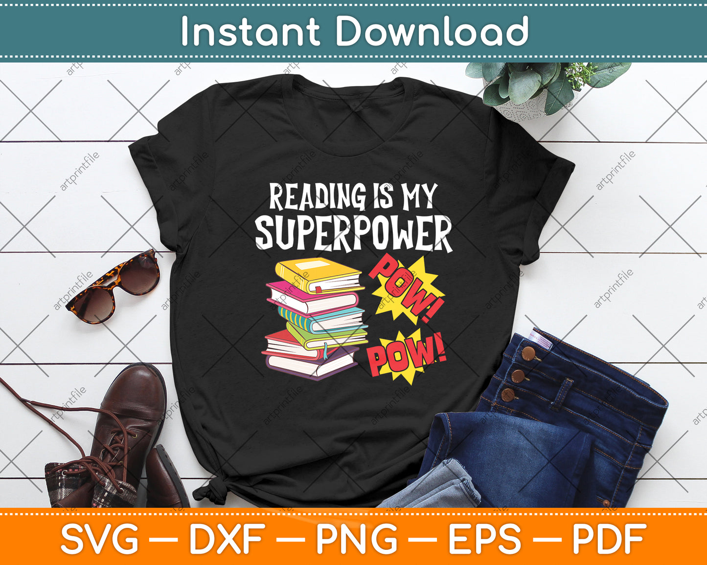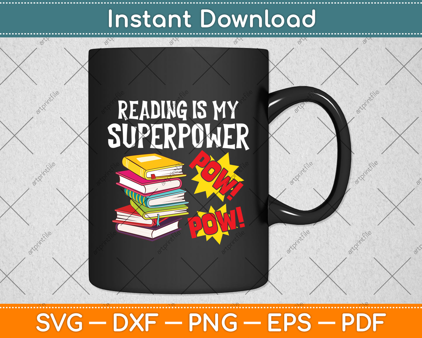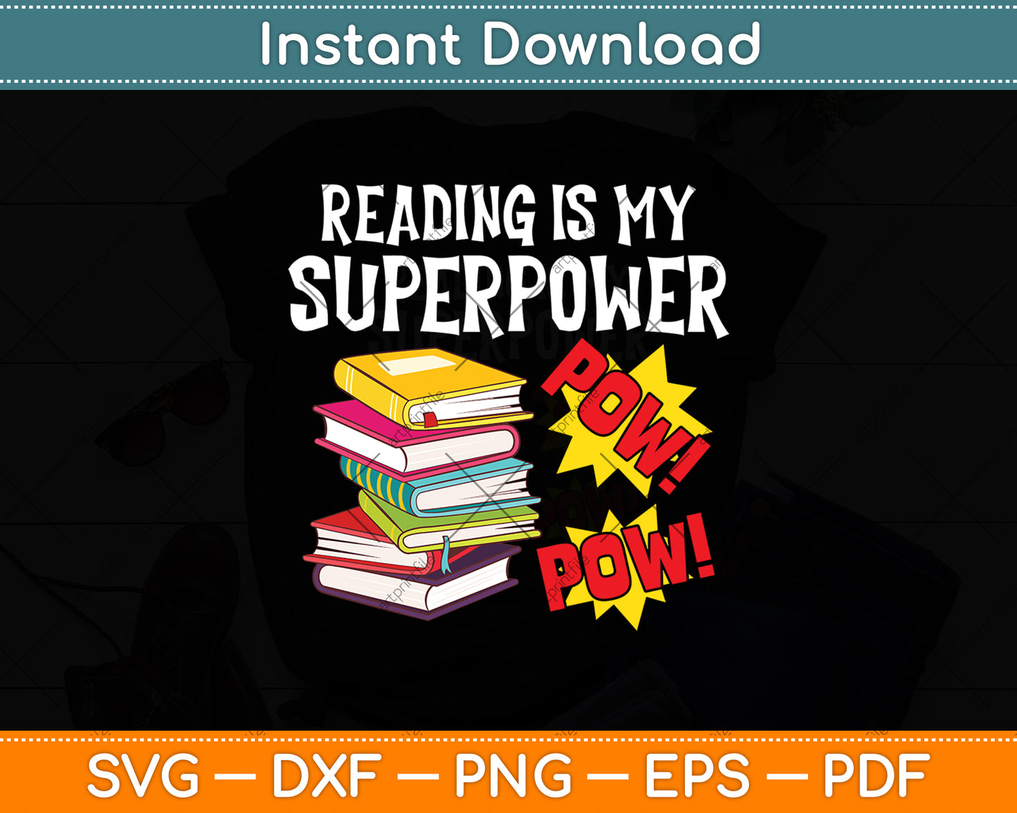This cut file includes Reading Is My Superpower Funny Book SVG DXF PNG Design Digital Cutting files.