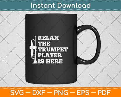 This cut file includes Relax The Trumpet Player Is Here SVG DXF PNG Design Digital Cutting files.