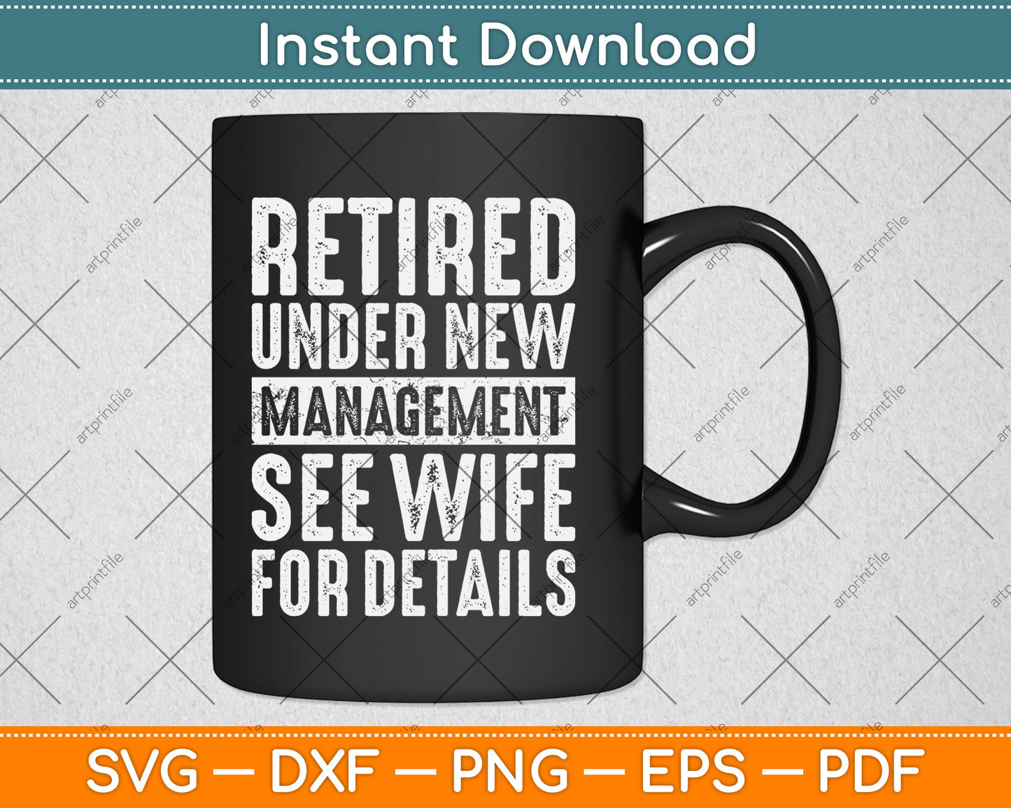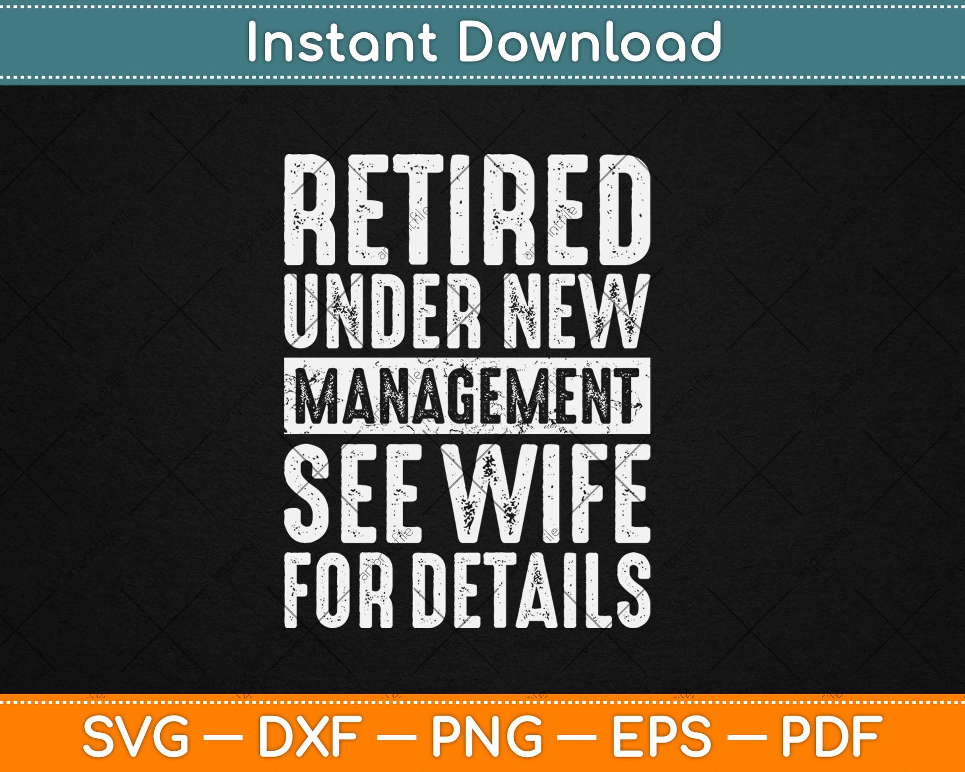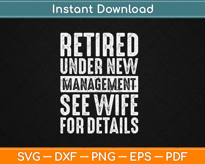 This cut file includes Retired Under New Management See Wife For Details Retirement SVG DXF PNG Design Digital Cutting files.
