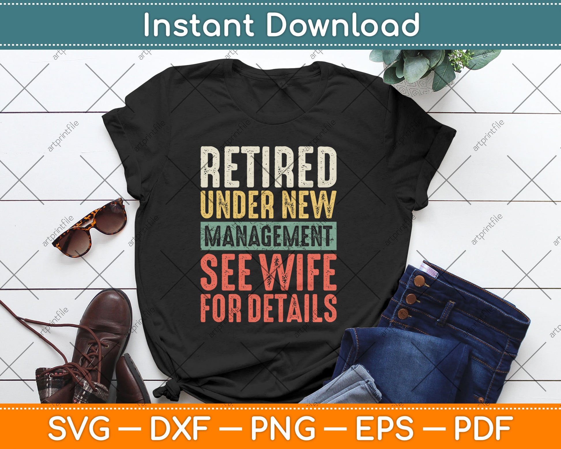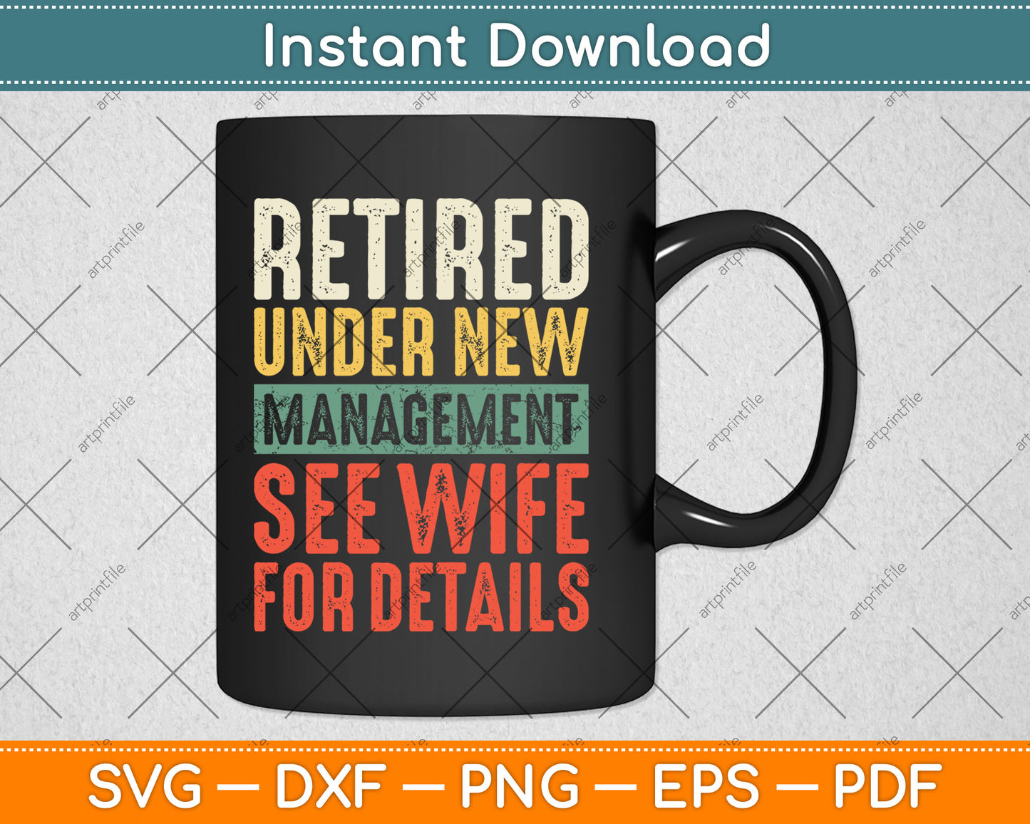 This cut file includes Retired Under New Management See Wife For Details Retirement SVG DXF PNG Design Digital Cutting files.