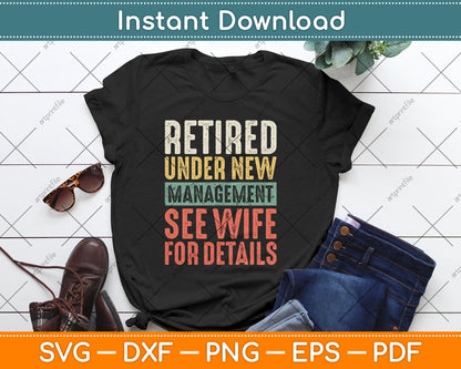 Retired Under New Management See Wife For Details Retirement Svg Digital Cutting File