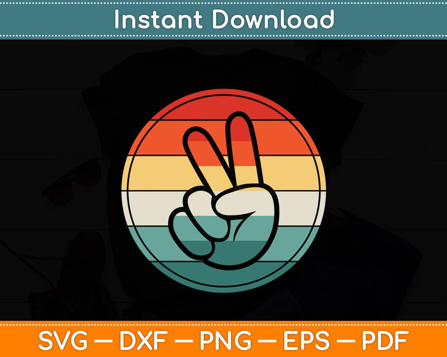 Retro Peace hand Vintage 60's 70's Hippie Svg Digital Cutting File