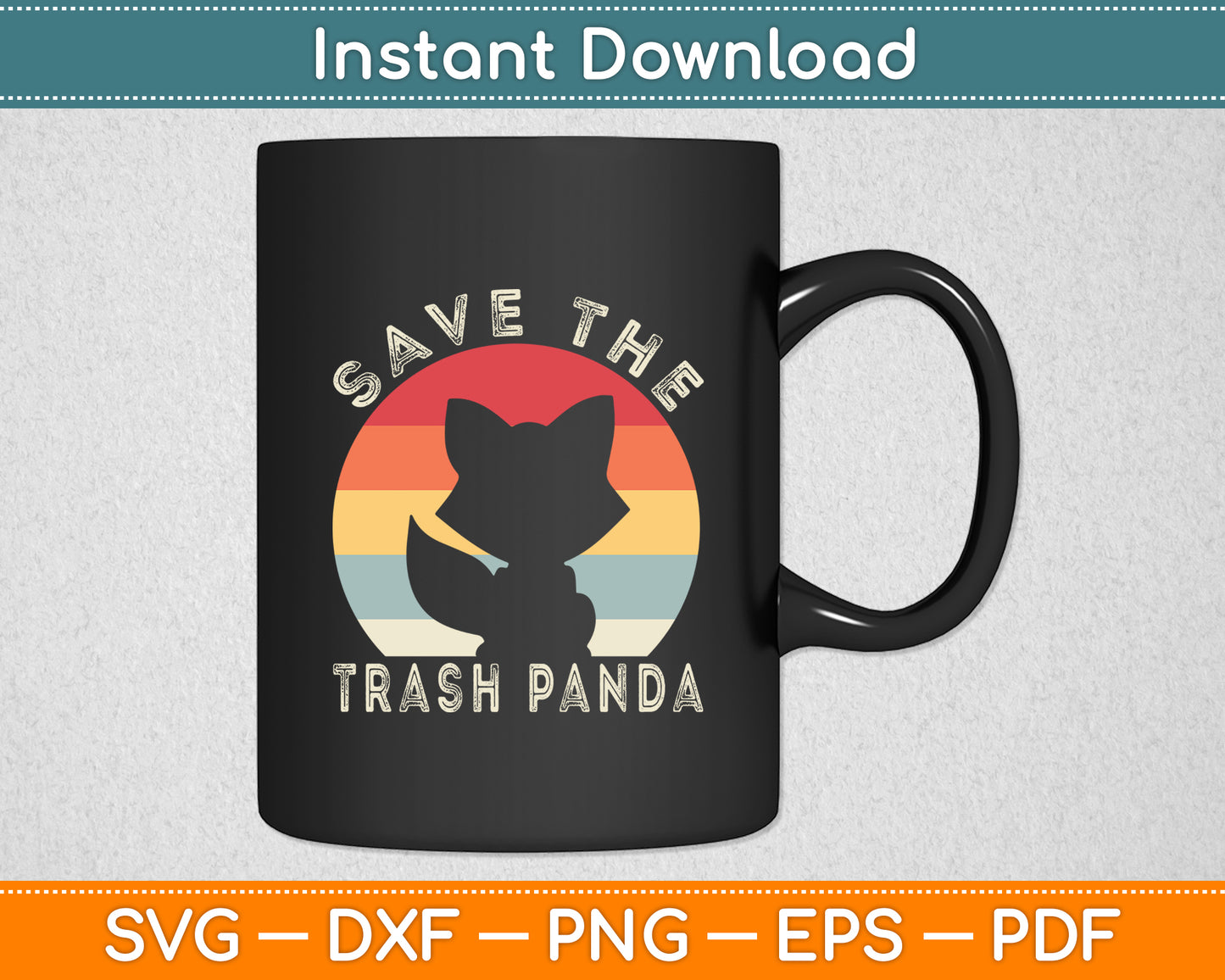This cut file includes Save The Trash Panda Raccoon Animal Sunset Retro SVG DXF PNG Design Digital Cutting files.