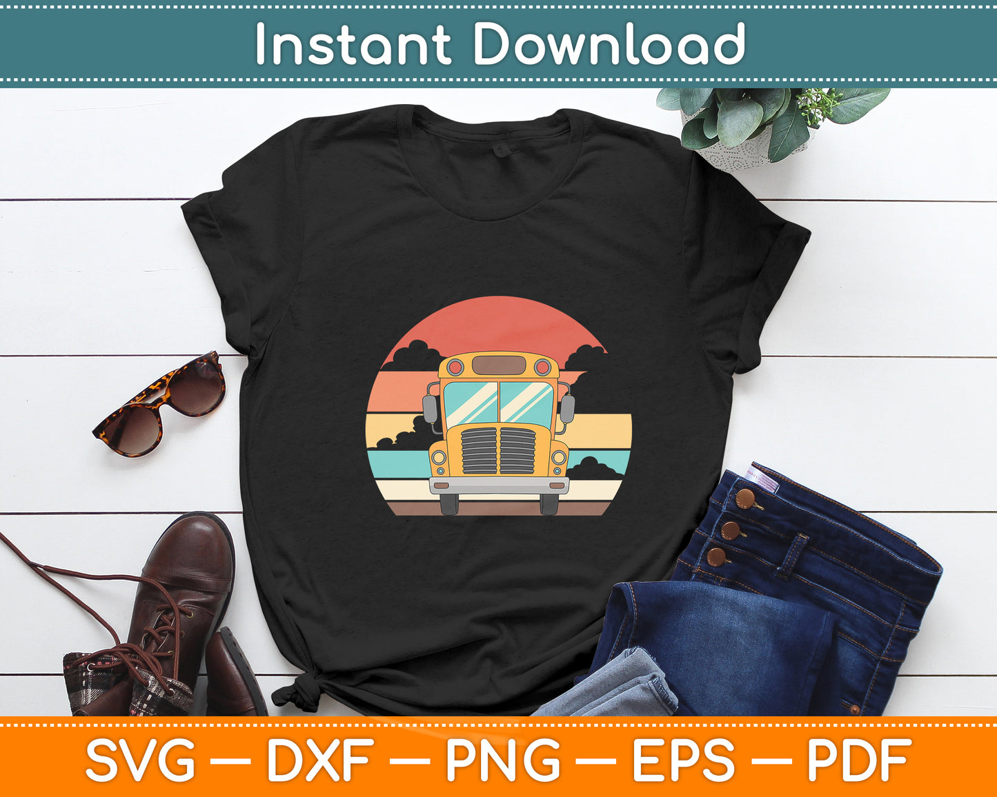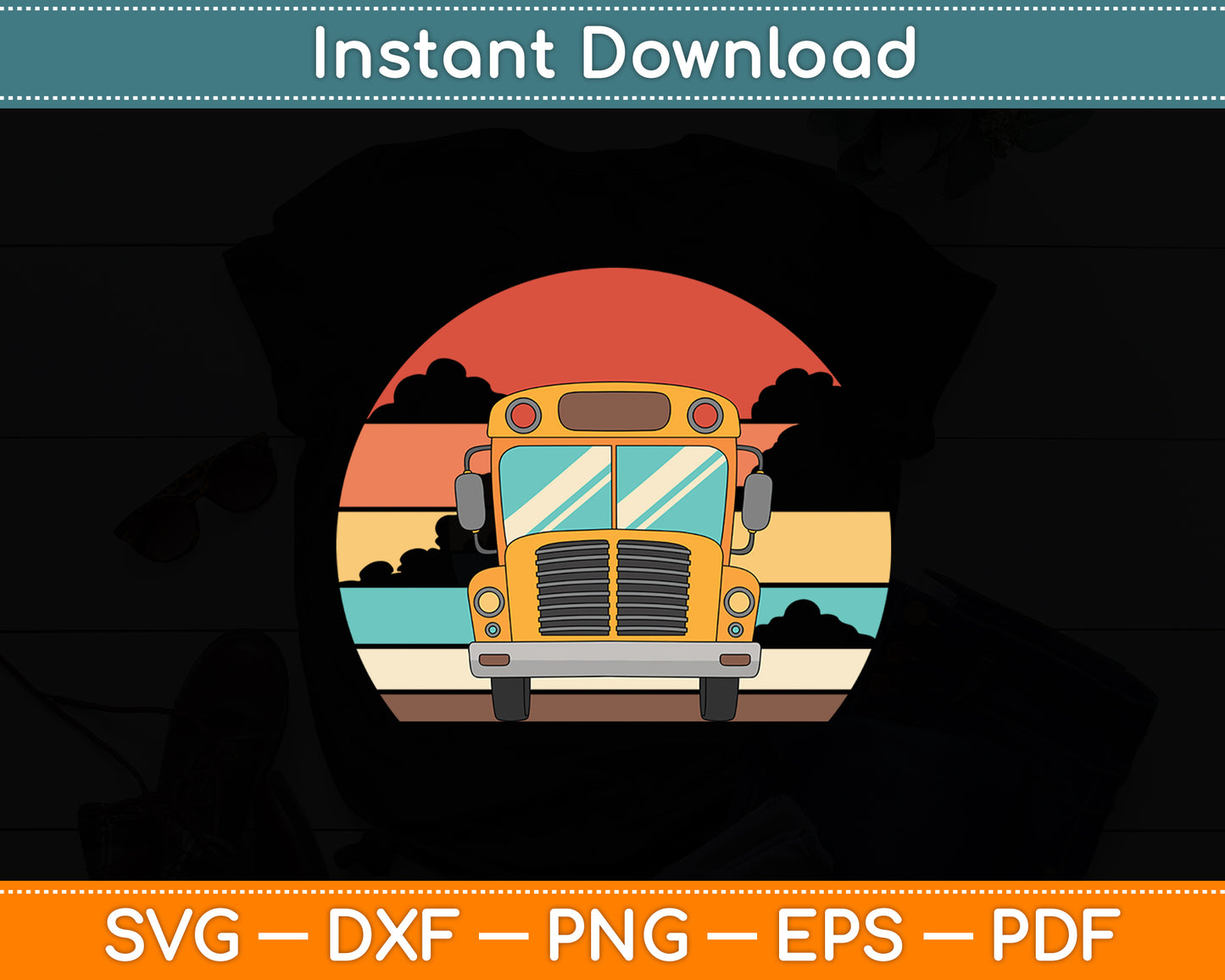 This cut file includes School Bus Driver Retro Yellow School Bus SVG DXF PNG Design Digital Cutting files.