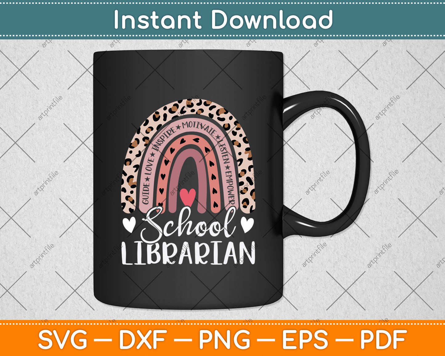 This cut file includes School Librarian Rainbow Leopard SVG DXF PNG Design Digital Cutting files.