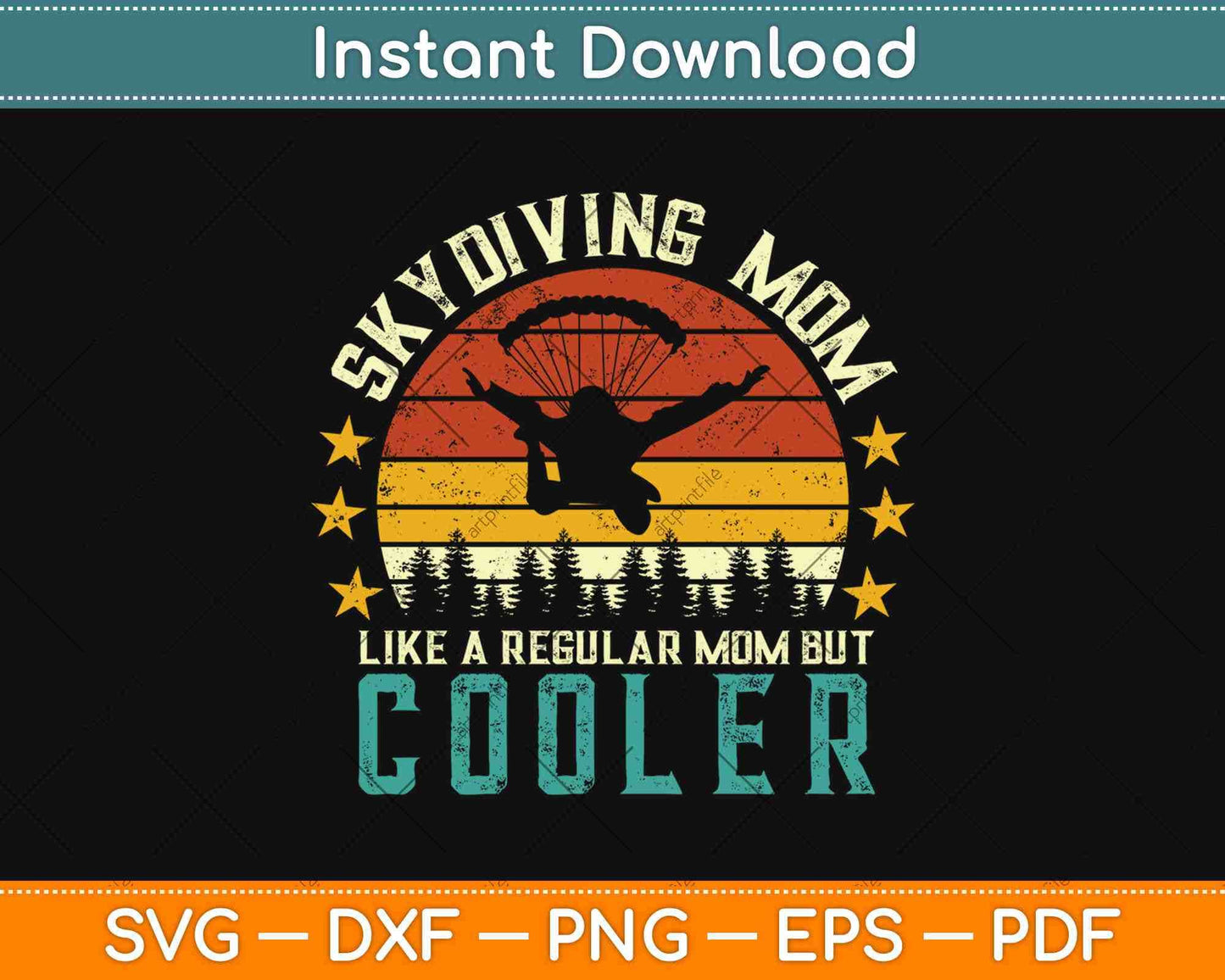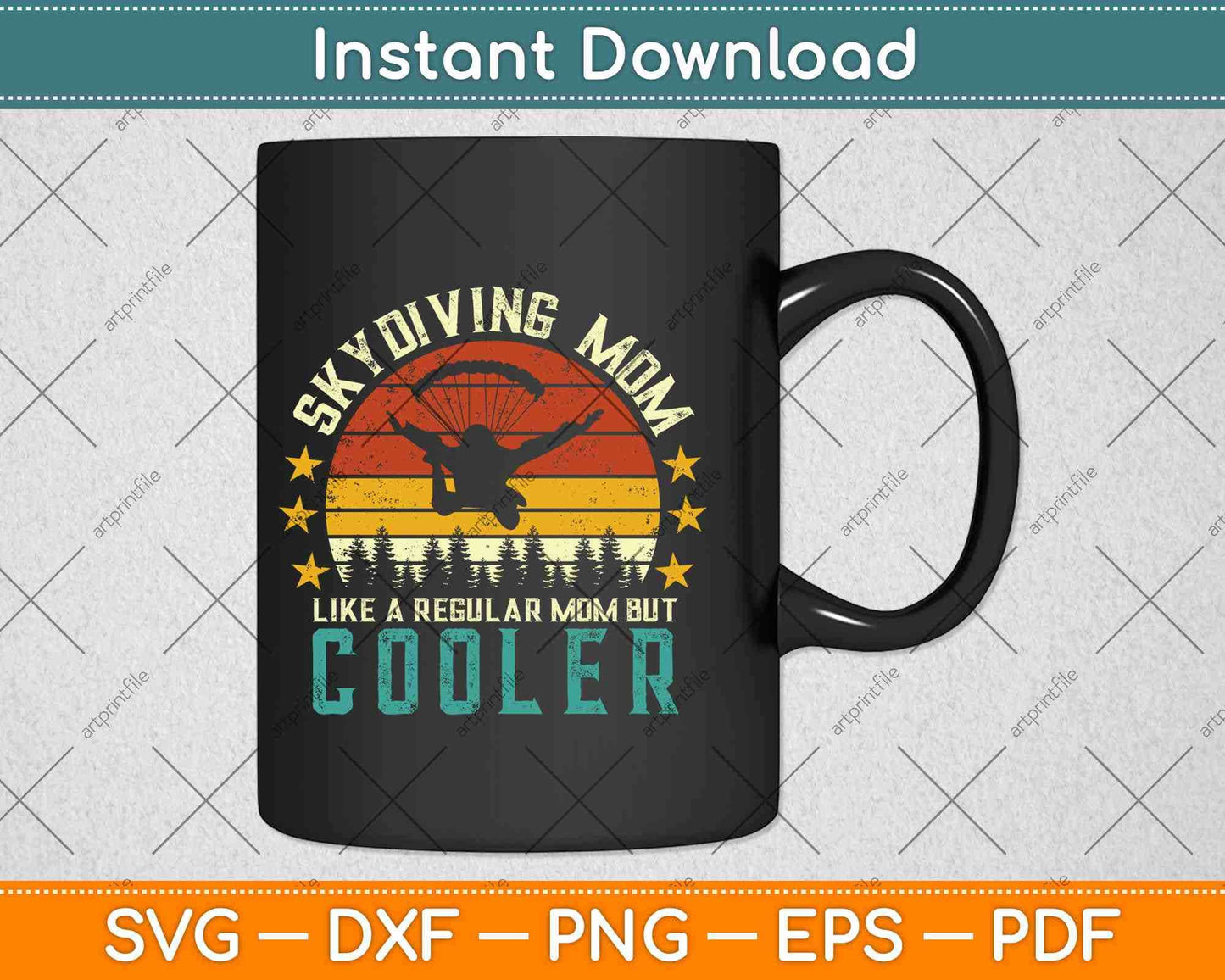 This cut file includes Skydiving Mom Like A Regular Mom But Cooler Mothers Day SVG DXF PNG Design digital Cutting files.