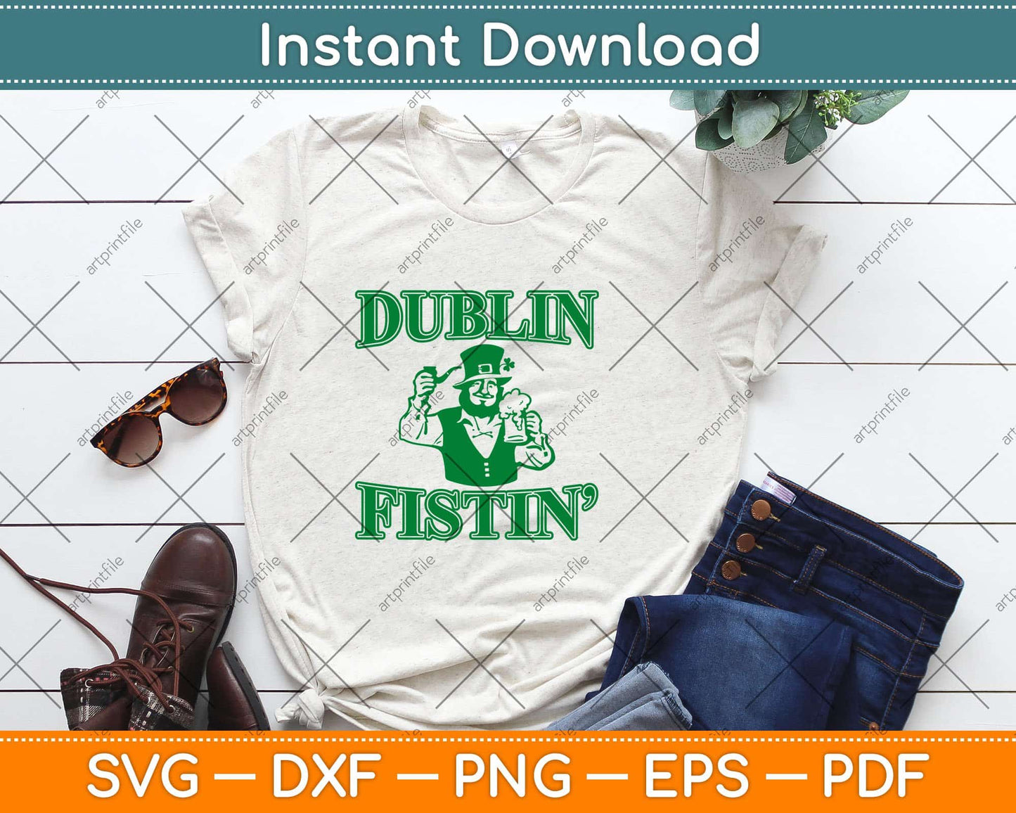 This cut file includes ST. Patricks Day Dublin Fistin SVG DXF PNG Design digital Cutting files.