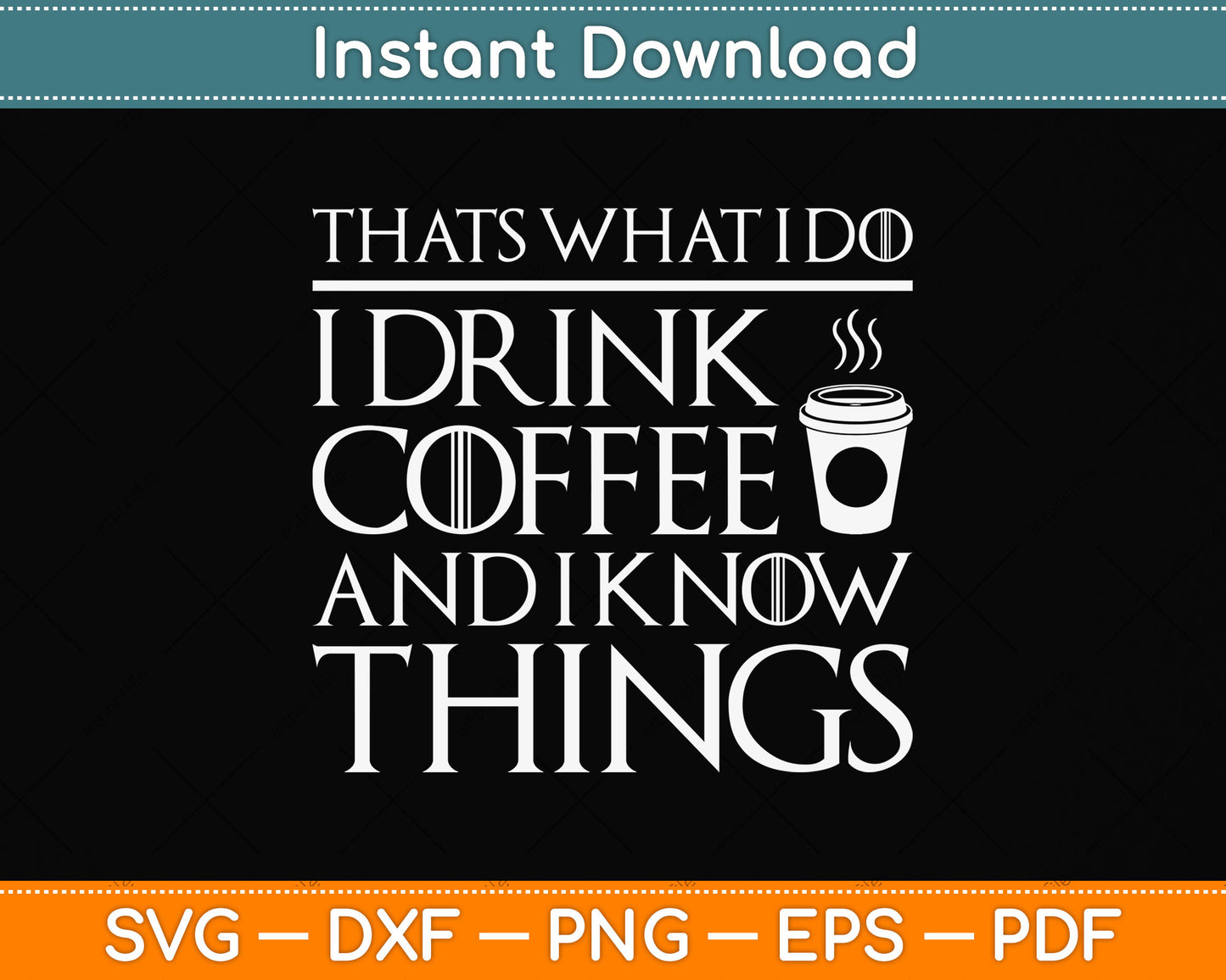 This cut file includes That's What I Do I Drink Coffee And I Know Things SVG DXF PNG Design Digital Cutting files.