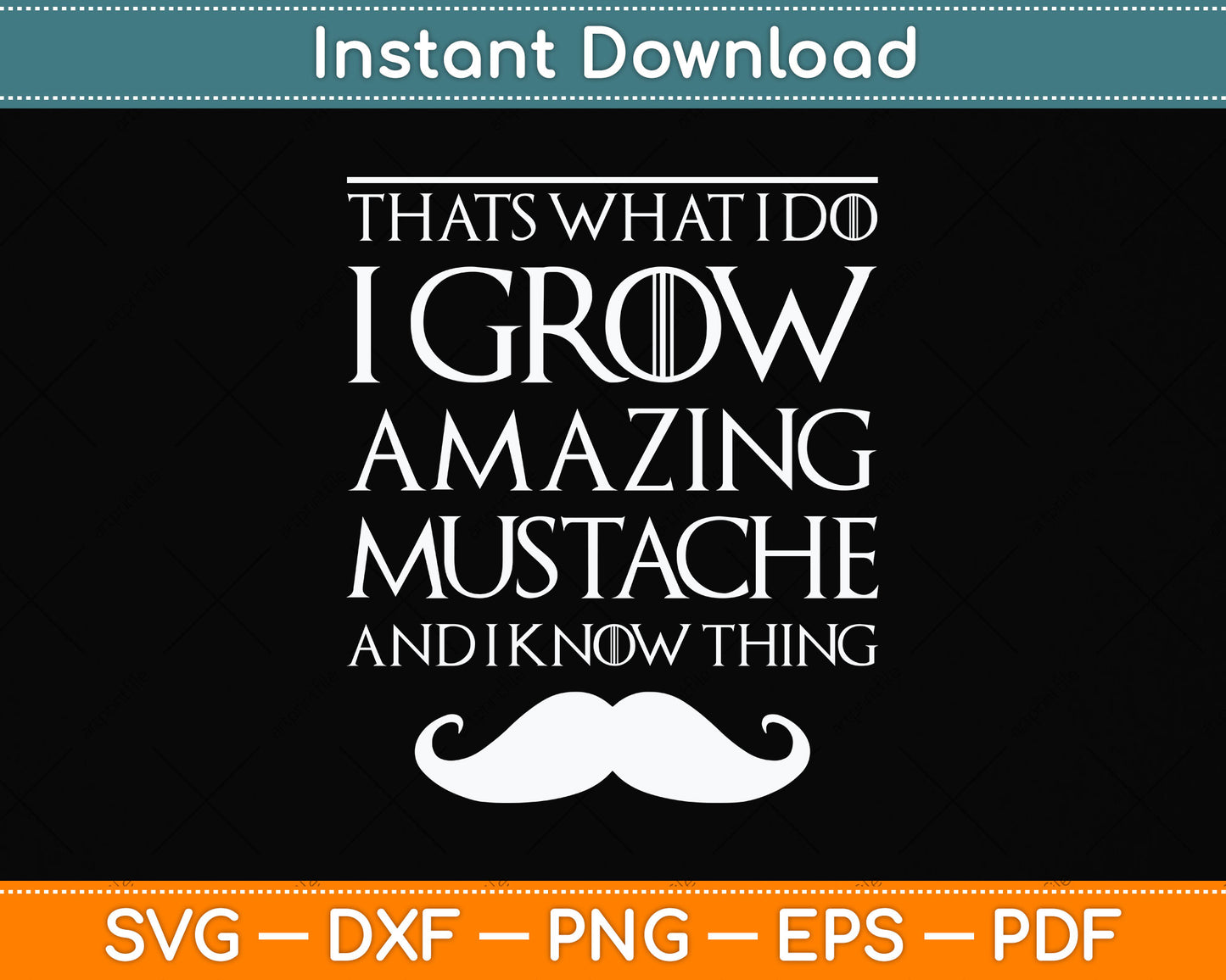 This cut file includes That's What I Do I Grow A Mustache and I Know Thing SVG DXF PNG Design Digital Cutting files.