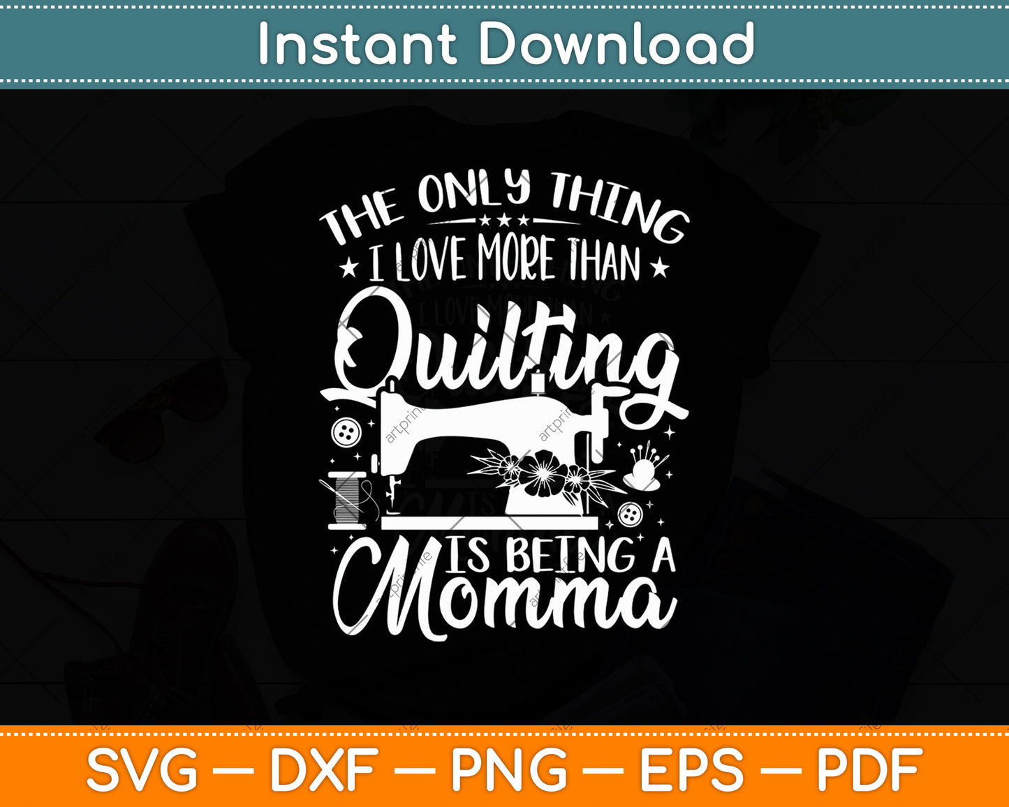 This cut file includes The Only Thing I Love More Than Quilting Is Being A Momma SVG DXF PNG Design Digital Cutting files.