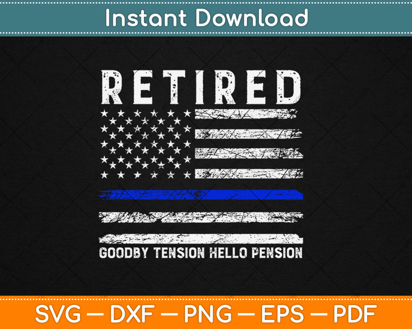 Thin Blue Line Retired Police Goodbye Tension Hello Pension Svg Design Cricut Cut File