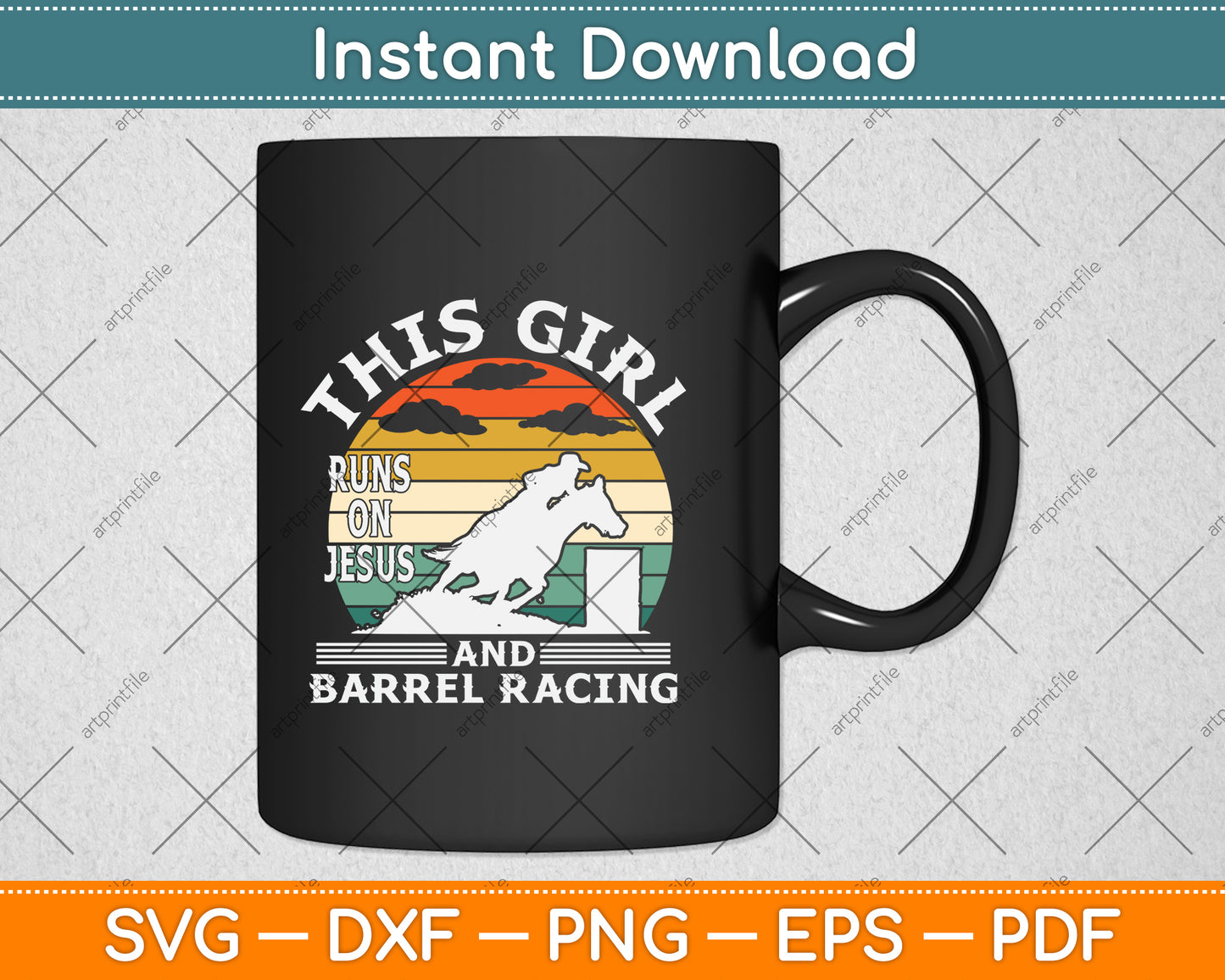 This cut file includes This Girl runs on Jesus And Barrel Racing SVG DXF PNG Design Digital Cutting files.