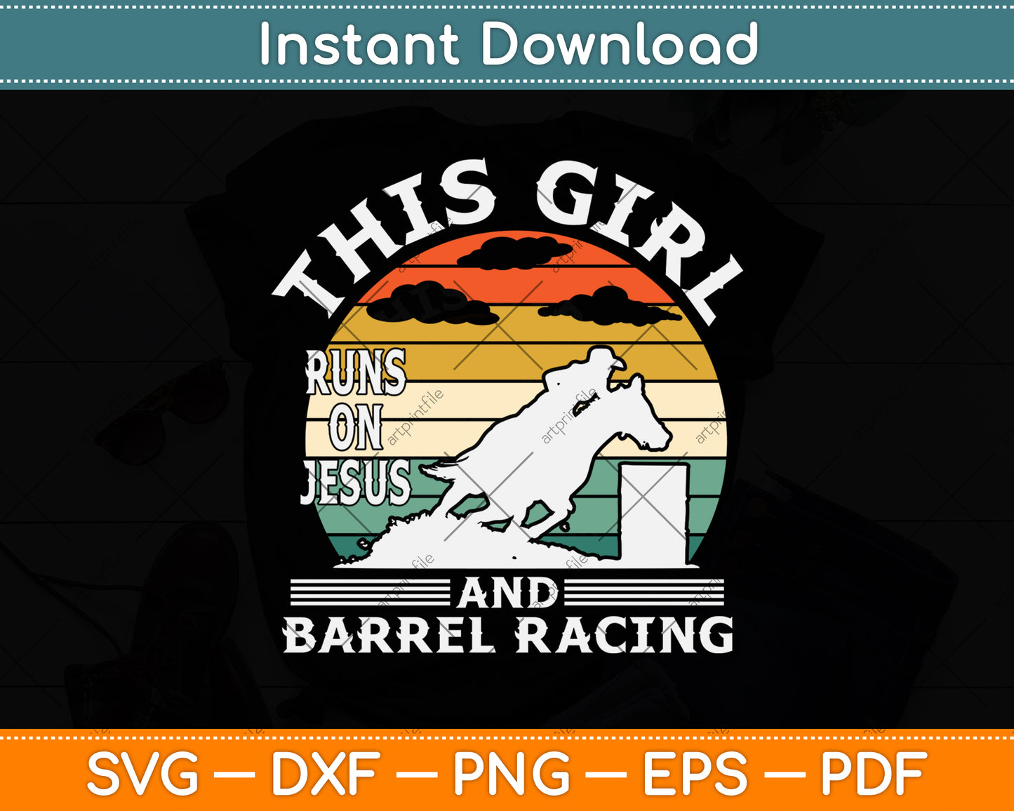 This Girl runs on Jesus And Barrel Racing Svg Png Dxf Digital Cutting File