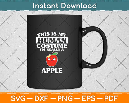 This cut file includes This Is my Human Costume I'm Really An Apple Funny SVG DXF PNG Design Digital Cutting files.