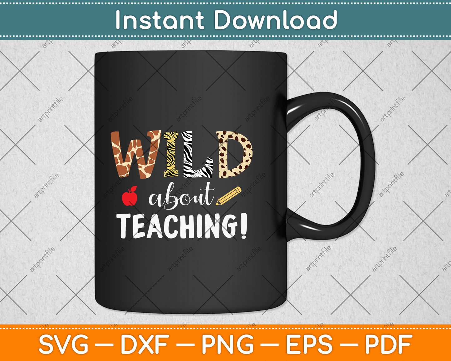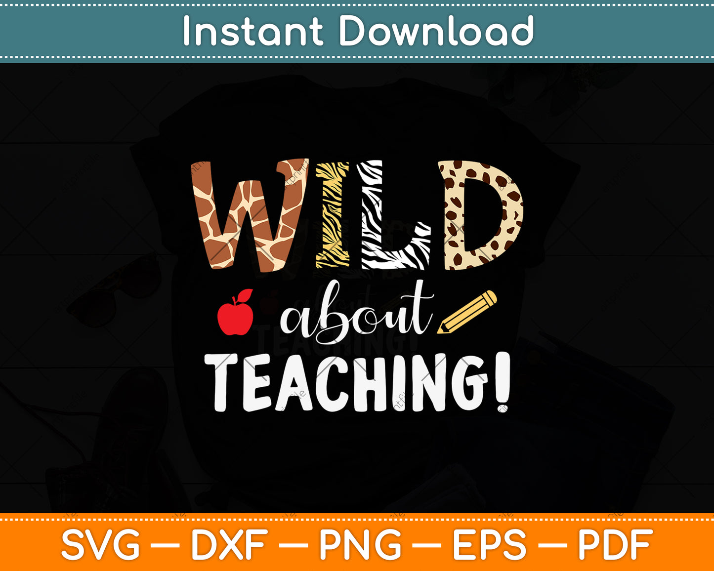 This cut file includes Wild About Teaching Zebra Leopard Print School Teacher SVG DXF PNG Design Digital Cutting files.