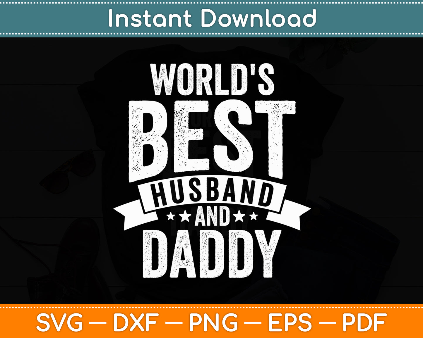 This cut file includes World's Best Husband And Dad Father's Day SVG DXF PNG Design Digital Cutting files.