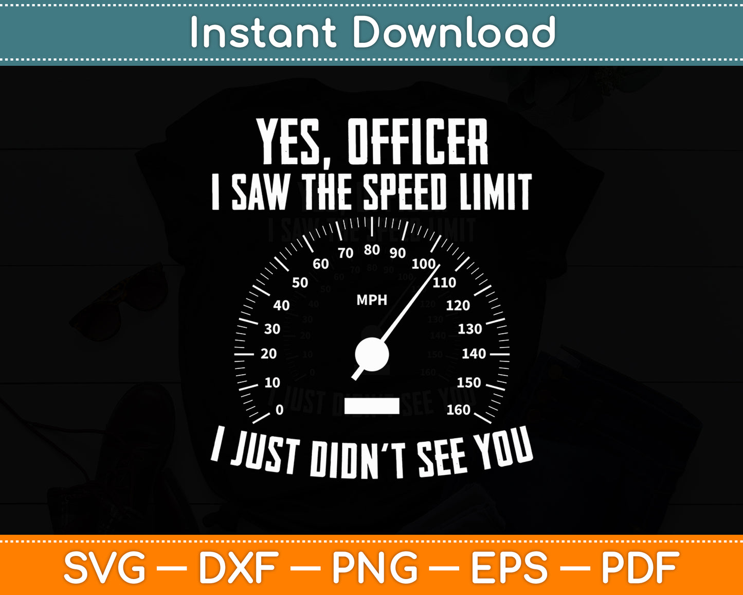 This cut file includes Yes Officer Speeding Funny Racing Race Car Driver Racer SVG DXF PNG Design Digital Cutting files.