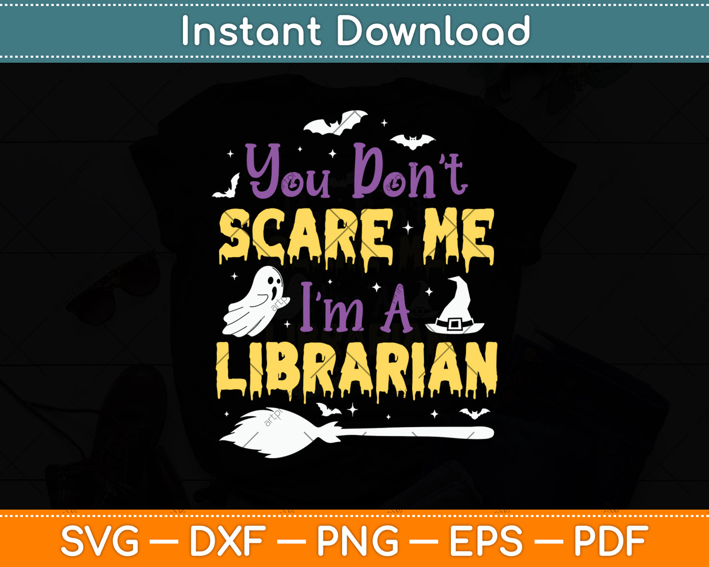 This cut file includes You Don't Scare Me I'm A Librarian SVG DXF PNG Design Digital Cutting files.