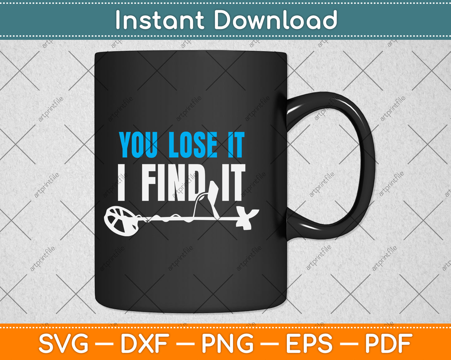 This cut file includes You Lose It I Find It Funny Metal Detector SVG DXF PNG Design Digital Cutting files.